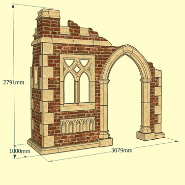 XXL Garten Ruinenmauer mit Naturstein & Fensterbögen - Aldershot Ruin