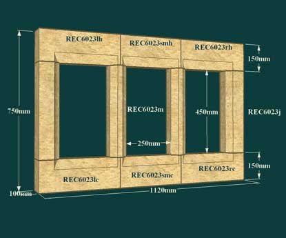Eckige Ruinen Fenster aus Stein als Bausatz - Toftan Hall / 165x150x20cm (HxBxT); 407kg