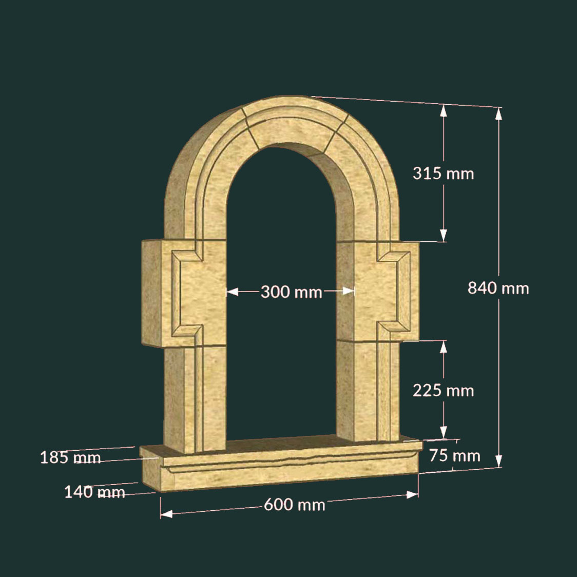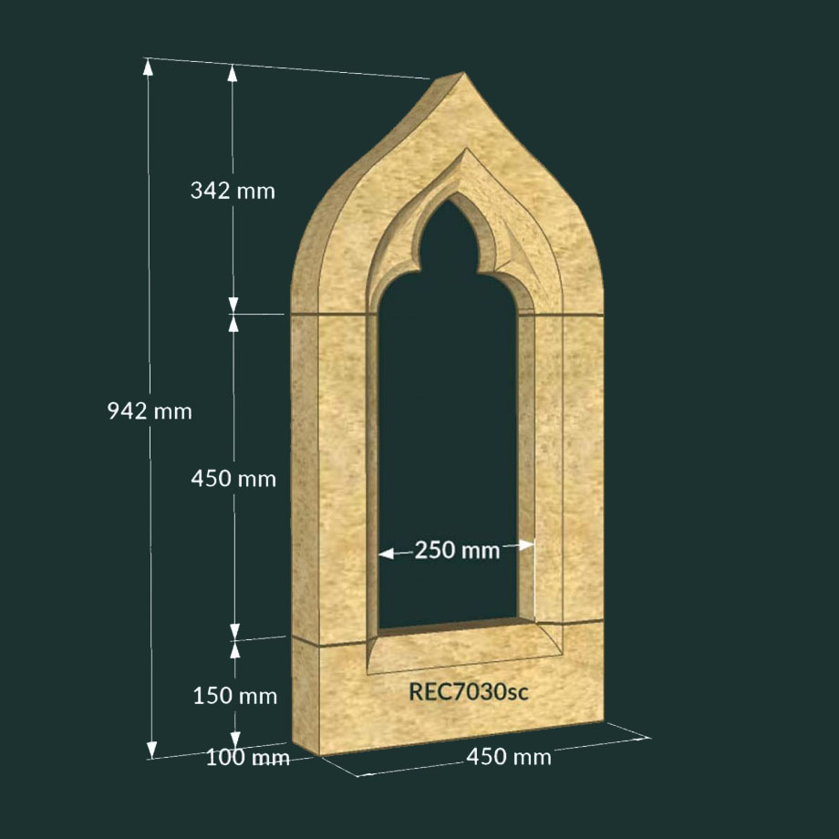 Hohes Fenster für Gartenruinen aus Stein mit Spitzdesign - Warford King / 132,9x210,0x20,0cm (HxBxT); 402kg