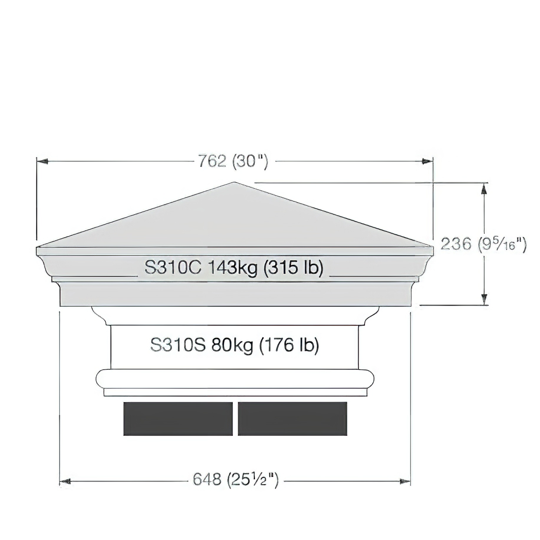 Mauer Pfosten Abdeckplatte aus Stein / Terrakotta / 76,2x76,2x41,1 cm (LxBxH)