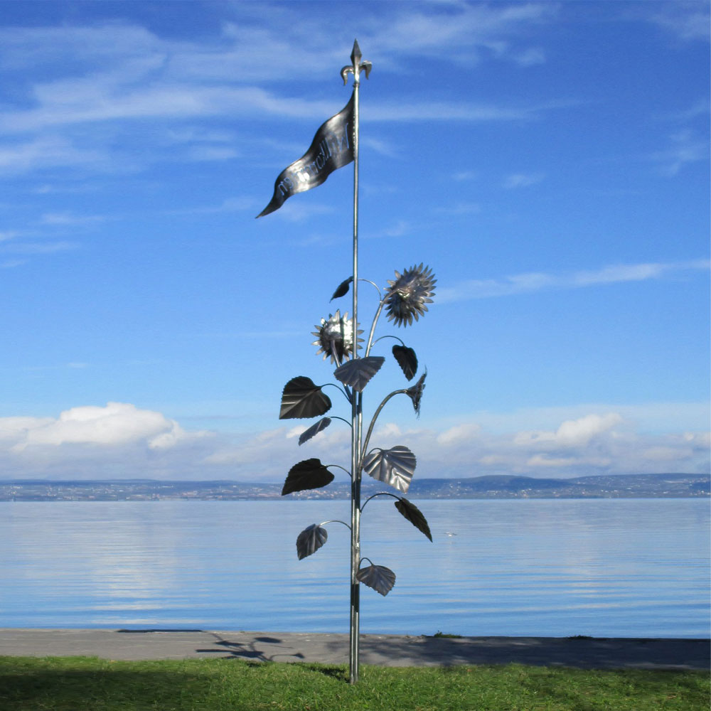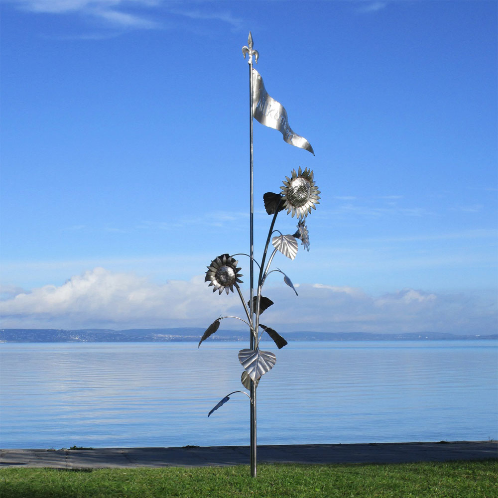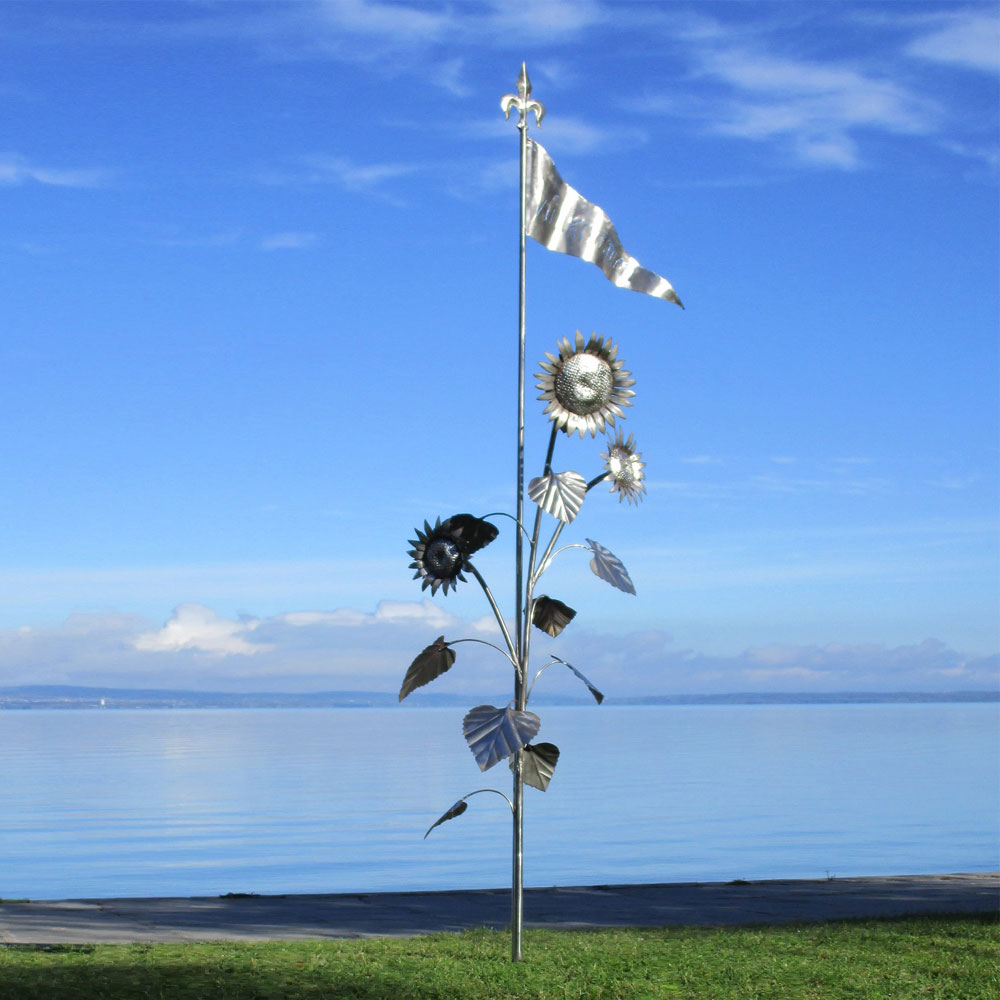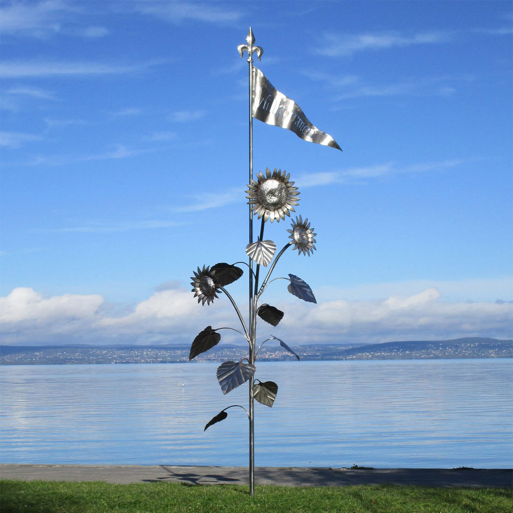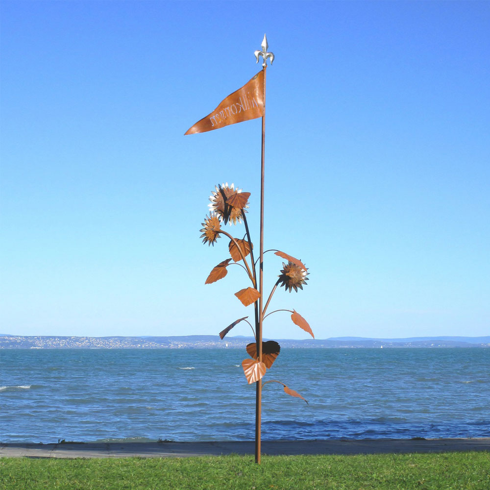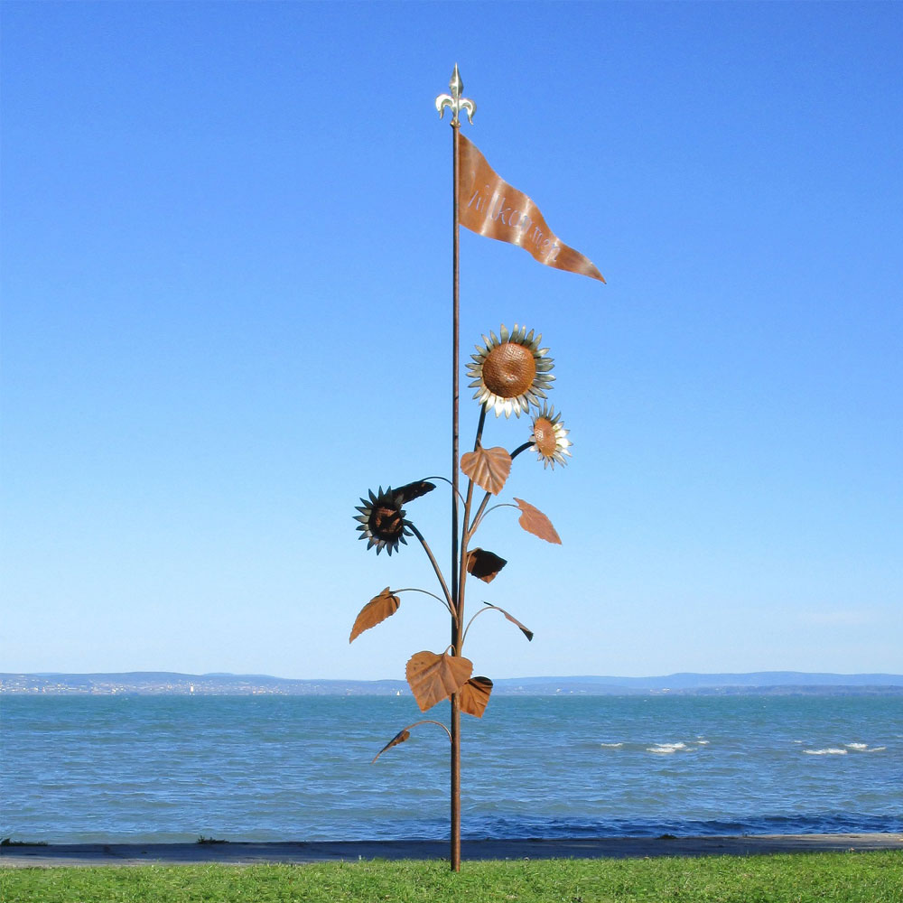 Metall Sonnenblume mit Willkommen - Fahne - Helian / Stahl - Rost
