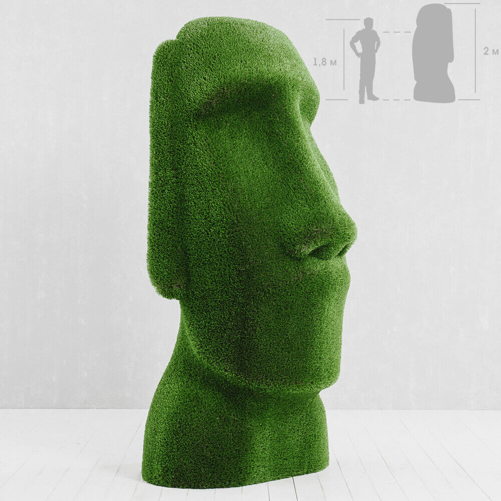 Moai Kopf Gartenfigur - Topiary - GFK & Kunstrasen - Idukan