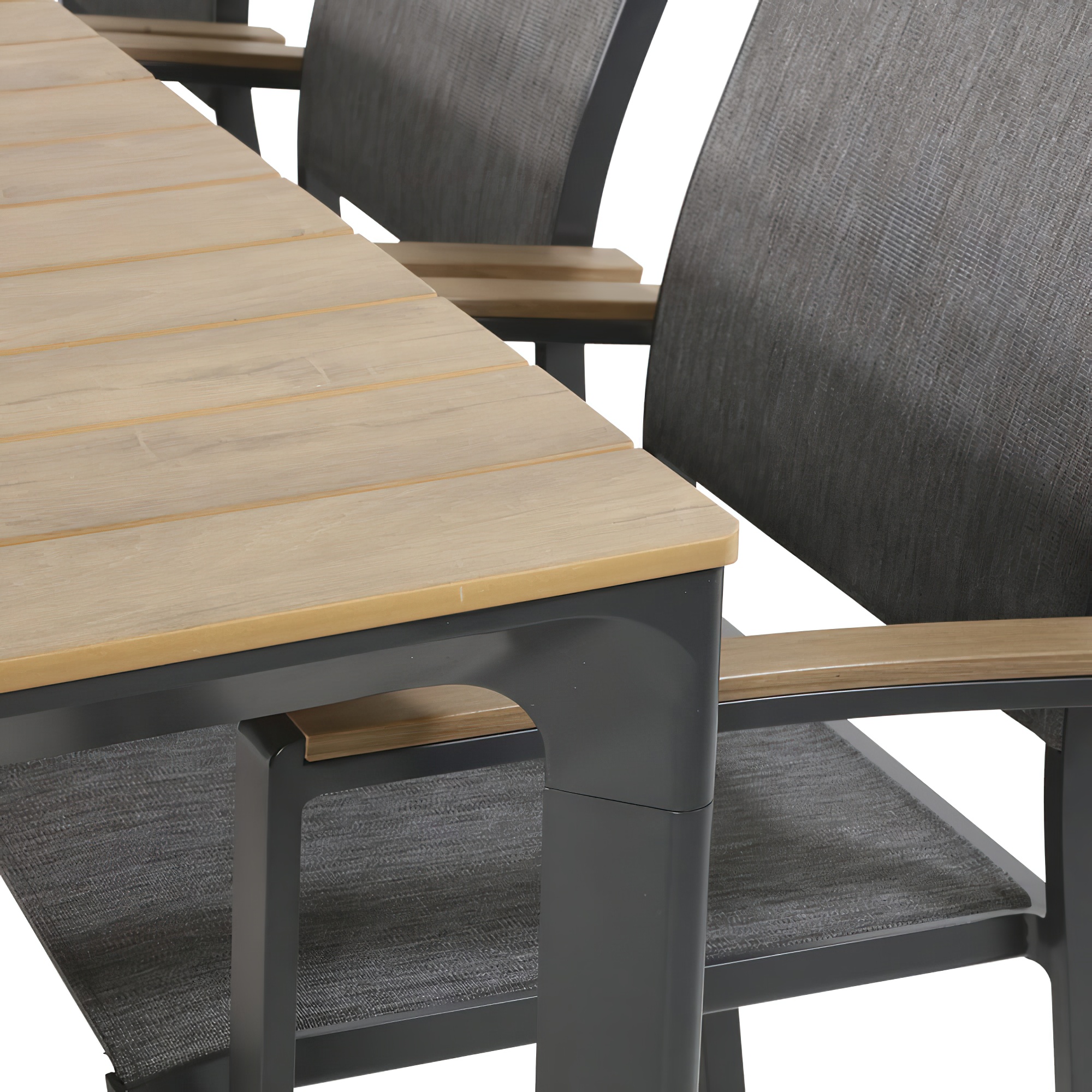 4-Sitzer Tischgruppe mit Ergotex und Teak-Holz - Spirabilis Möbel-Set / Anthrazit