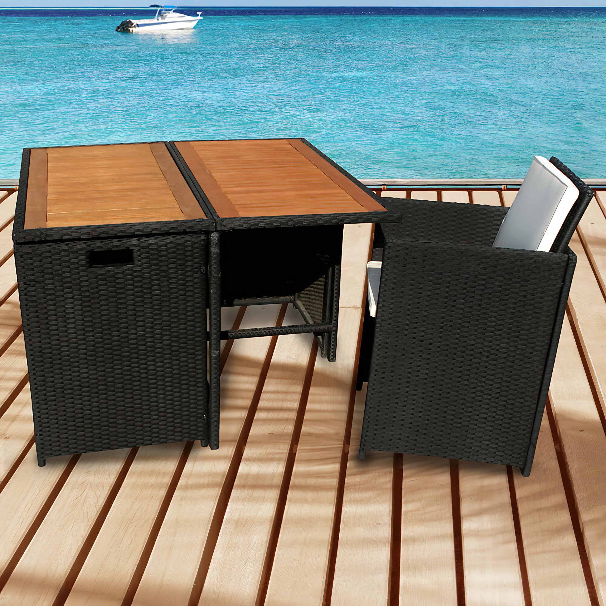 2-Sitzer Set mit Tisch inkl. Aufbewahrungsfunktion - Balkonmöbel Rigosa
