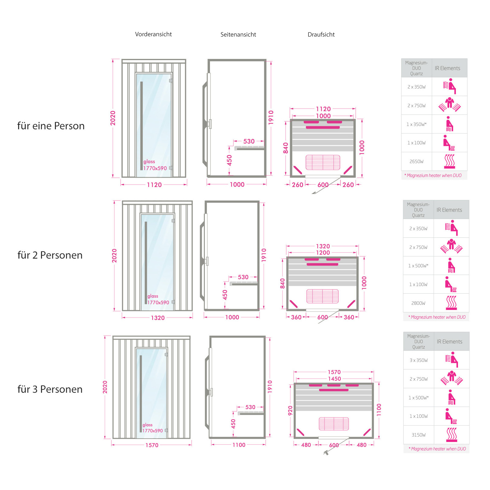Modern ausgestattete Indoor Infrarotkabine aus Fichtenholz für Zuhause - Osiris / für 2 Personen / mit DUO Heizung