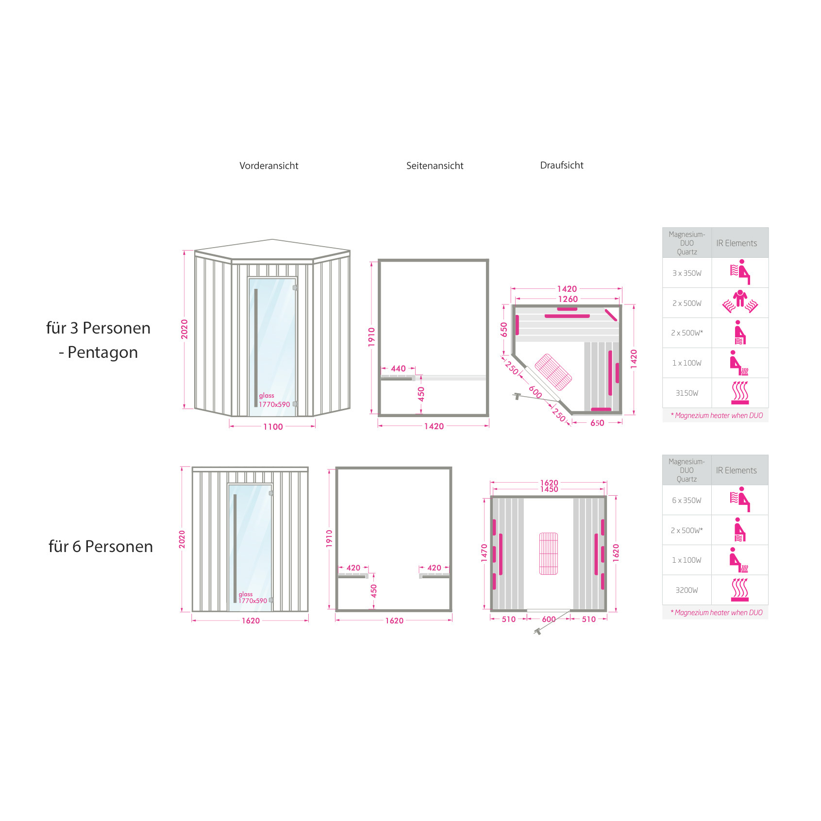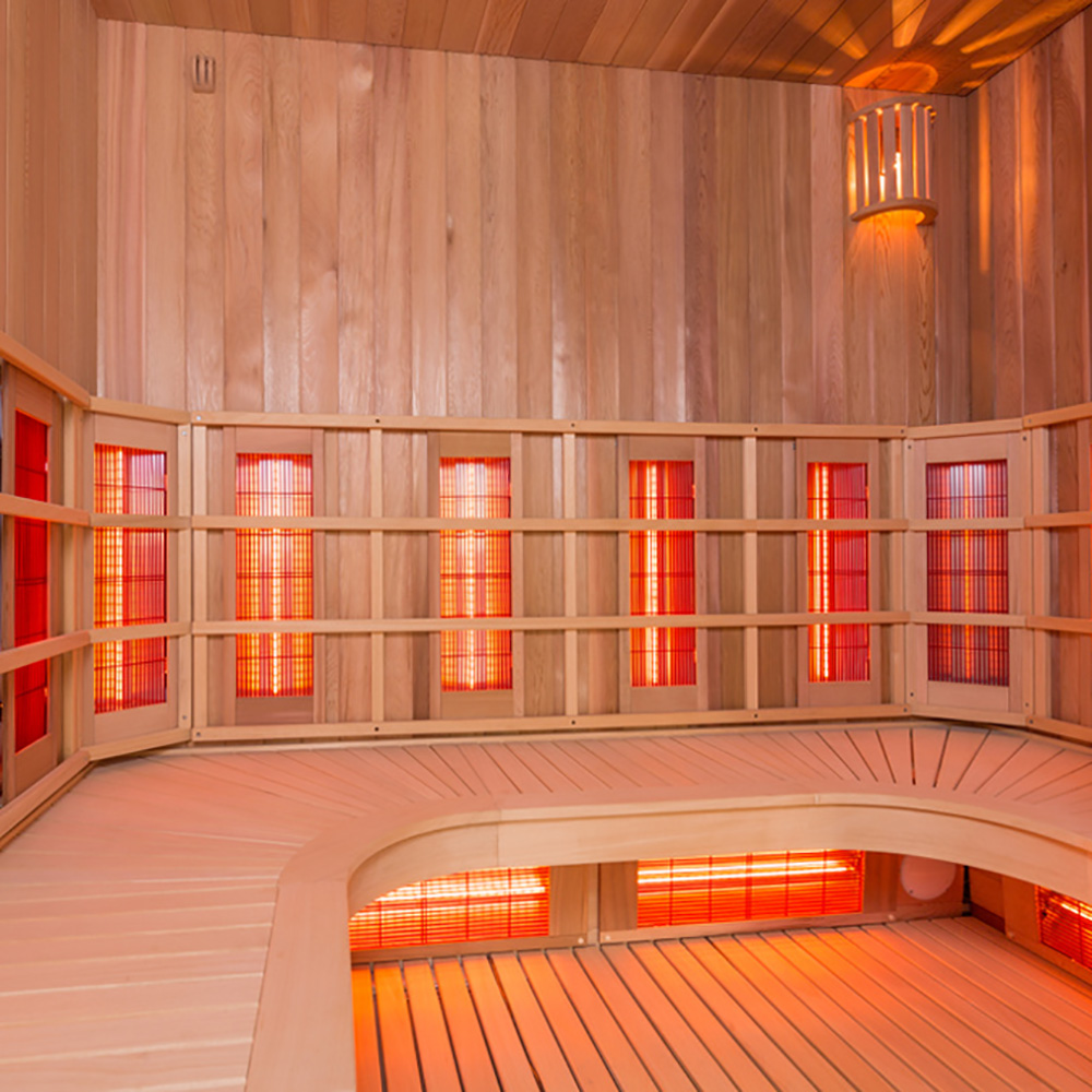 La cabine infrarouge est équipée d'un ensemble complet. Certains éléments sont à choisir par vos soins. Des options supplémentaires et des solutions bien-être sur mesure sont possibles. Voici un aperçu de l'équipement standard :