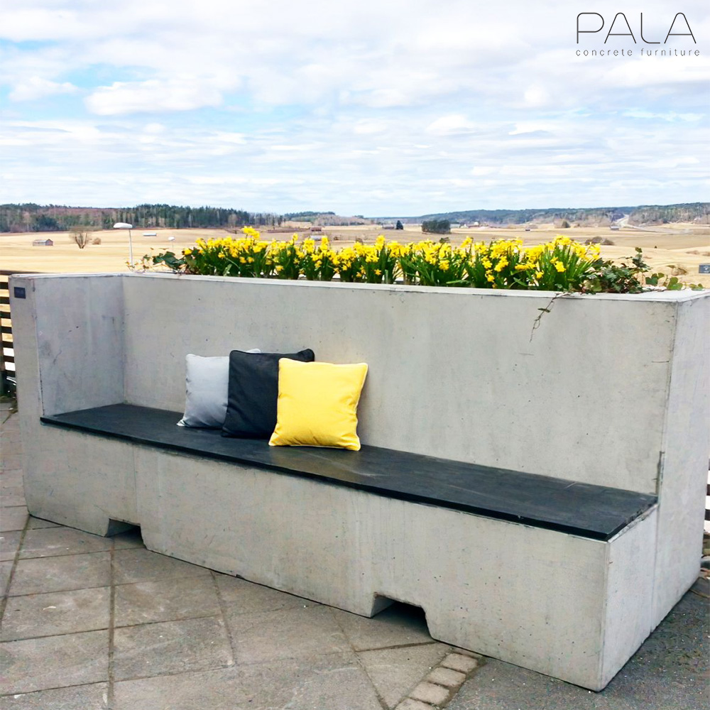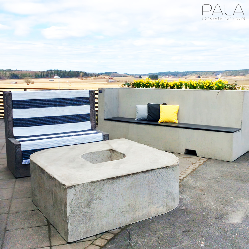 Ces meubles design robustes et résistants aux intempéries sont fabriqués en Finlande par Pala. Grâce à un procédé de moulage, le béton se transforme en mobilier contemporain pour jardins, parcs ou aménagements urbains. La teinte du béton peut être modifiée en fonction du type de granulats utilisés, ce qui nous permet de vous proposer, sur demande, des meubles en béton en blanc, anthracite, rouge, orange, jaune ou bleu. Nous sommes également à votre disposition pour réaliser vos idées personnalisées. Envoyez-nous un croquis accompagné des dimensions souhaitées pour vos décorations ou meubles en béton uniques, et nous vous établirons une offre sans engagement. Un chariot élévateur ou une grue est nécessaire pour le déchargement à la livraison. Les meubles sont équipés de points de levage intégrés.
