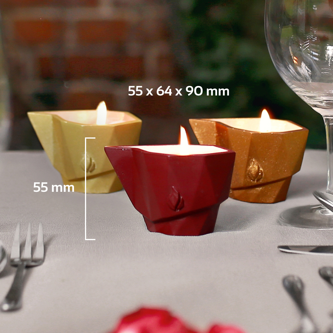 Les porte-bougies modernes de la marque Lizzio sont conçus avec soin par le designer et fabriqués à la main en béton architectural. Chaque pièce est une création personnalisée unique. Le béton certifié est spécialement conçu pour l'extérieur et se distingue par sa grande résistance au gel, aux rayons UV et à l'humidité. Les couleurs utilisées sont des laques certifiées. Les bougies sont fabriquées à partir d'huile végétale et d'une mèche naturelle, ce qui réduit presque totalement l'émission de suie nocive. Elles offrent une durée de combustion allant jusqu'à 11 heures et la coque en béton est réutilisable. Pour des tailles, couleurs ou designs différents, nous serons ravis de vous proposer une offre personnalisée sans engagement.