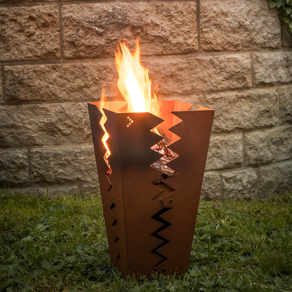 Moderne Feuerschale aus Stahl in Rost Optik - Styx