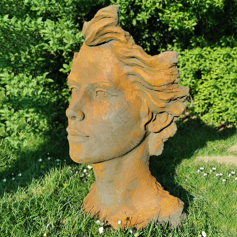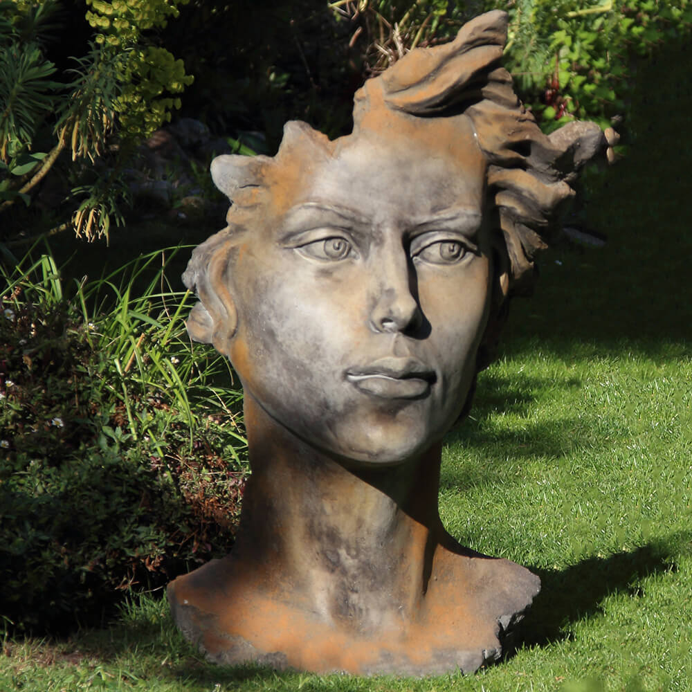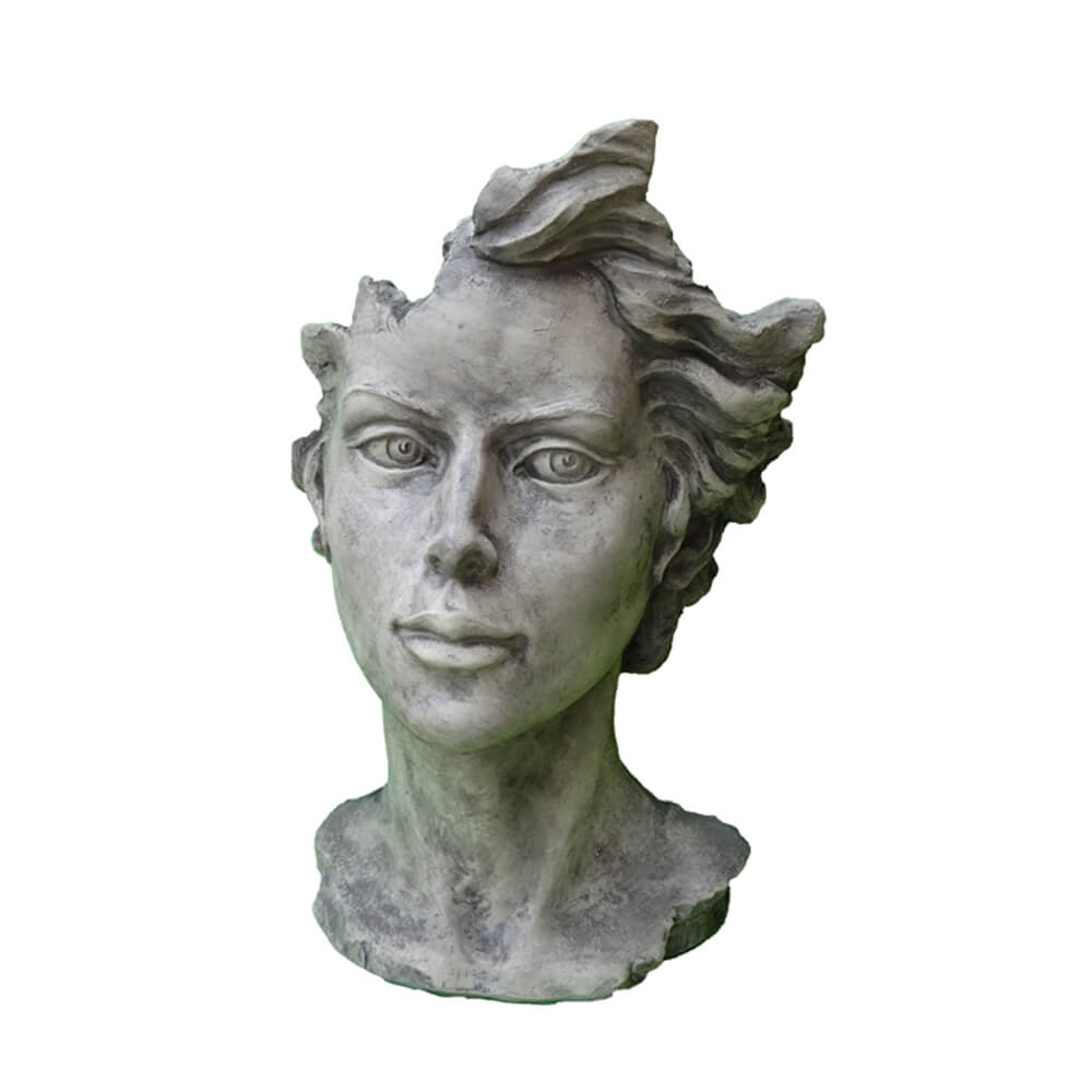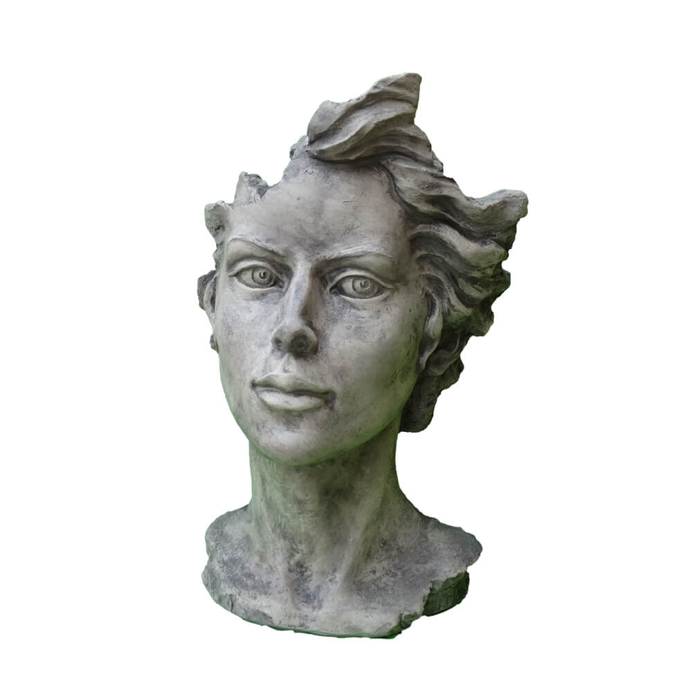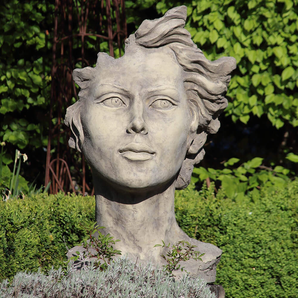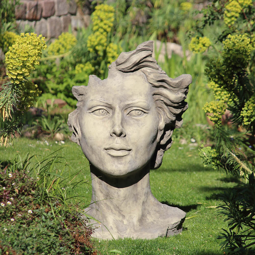 Moderne Gartenbüste mit Frauengesicht aus Steinguss - Calibri / Antikgrau