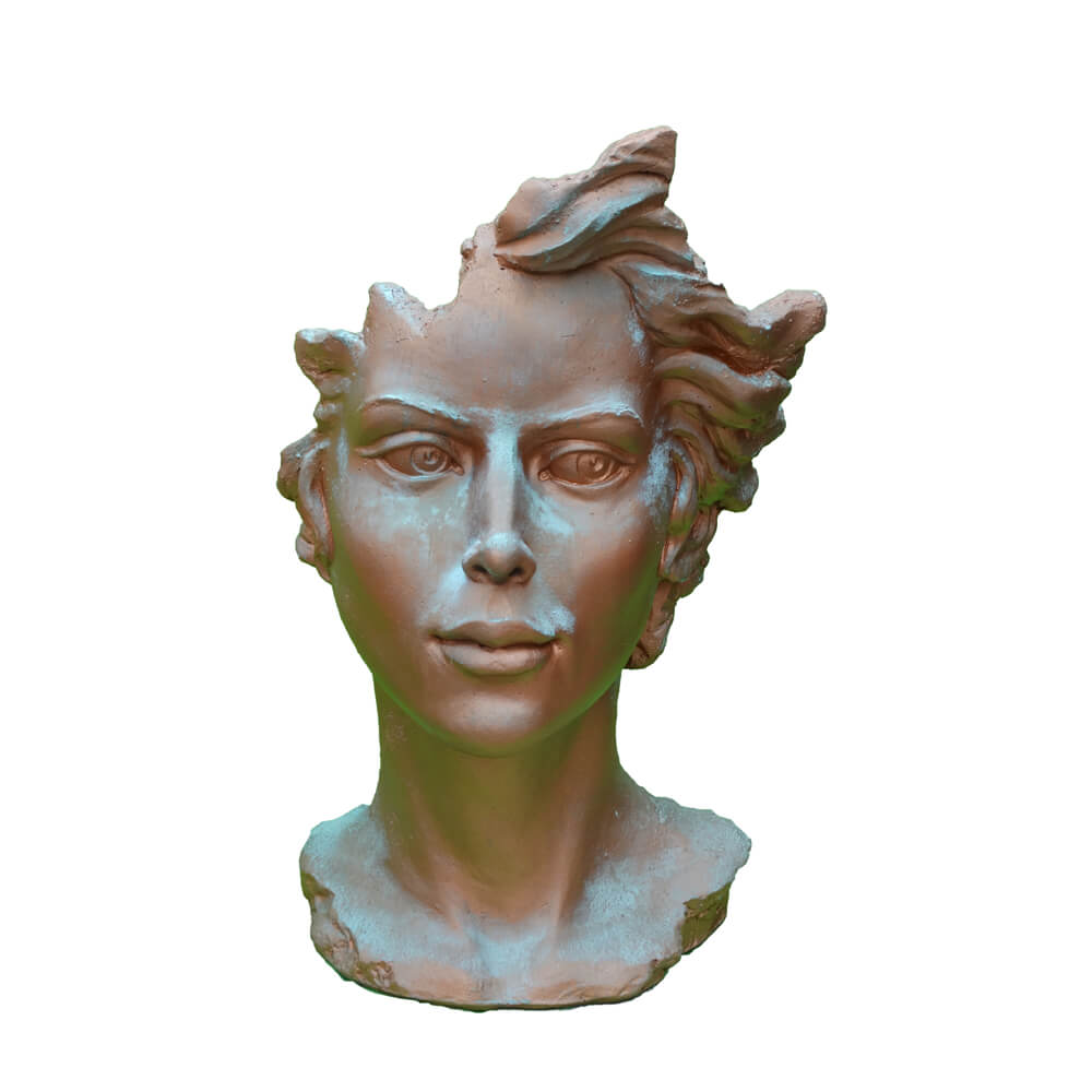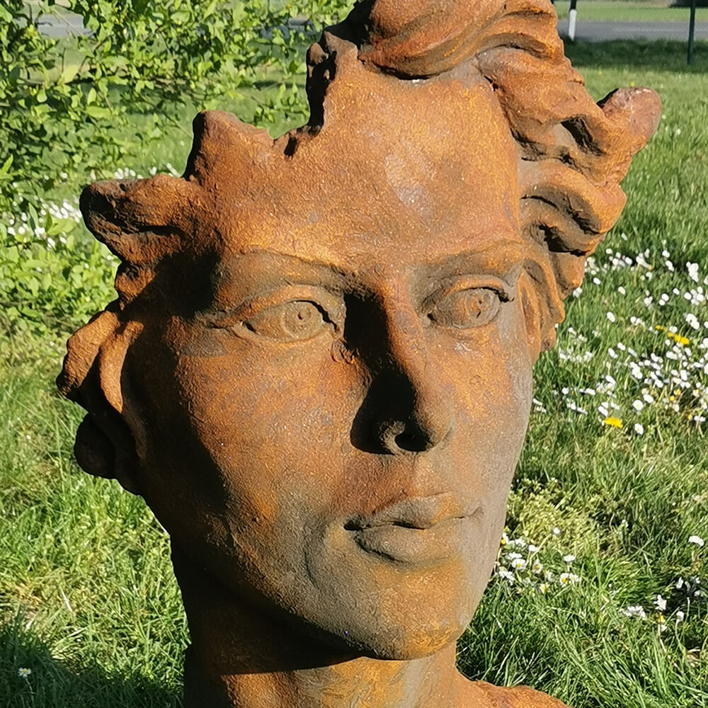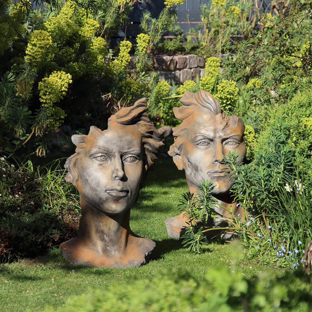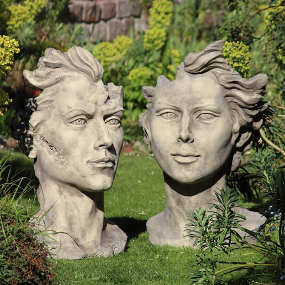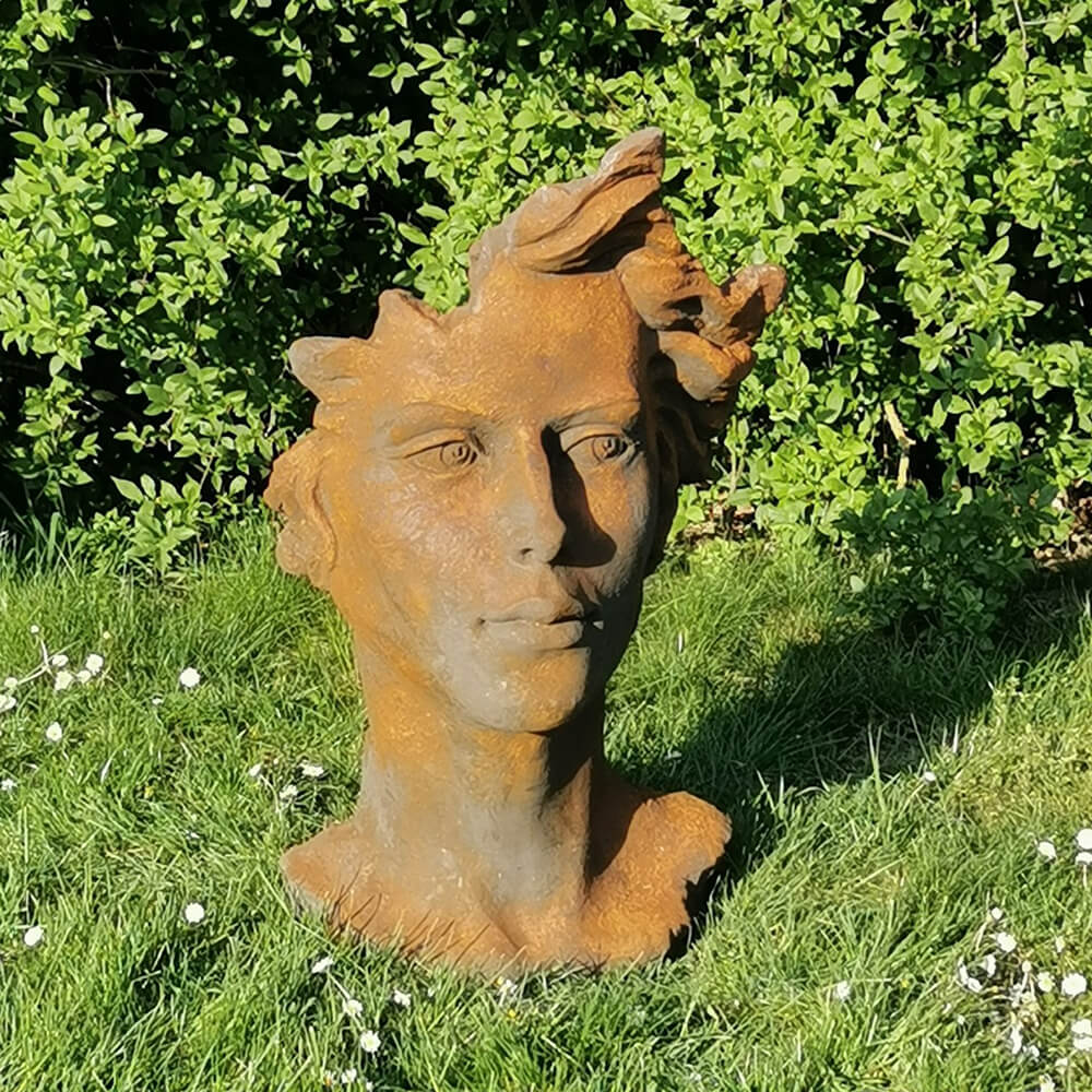 Moderne Gartenbüste mit Frauengesicht aus Steinguss - Calibri / Antikgrau