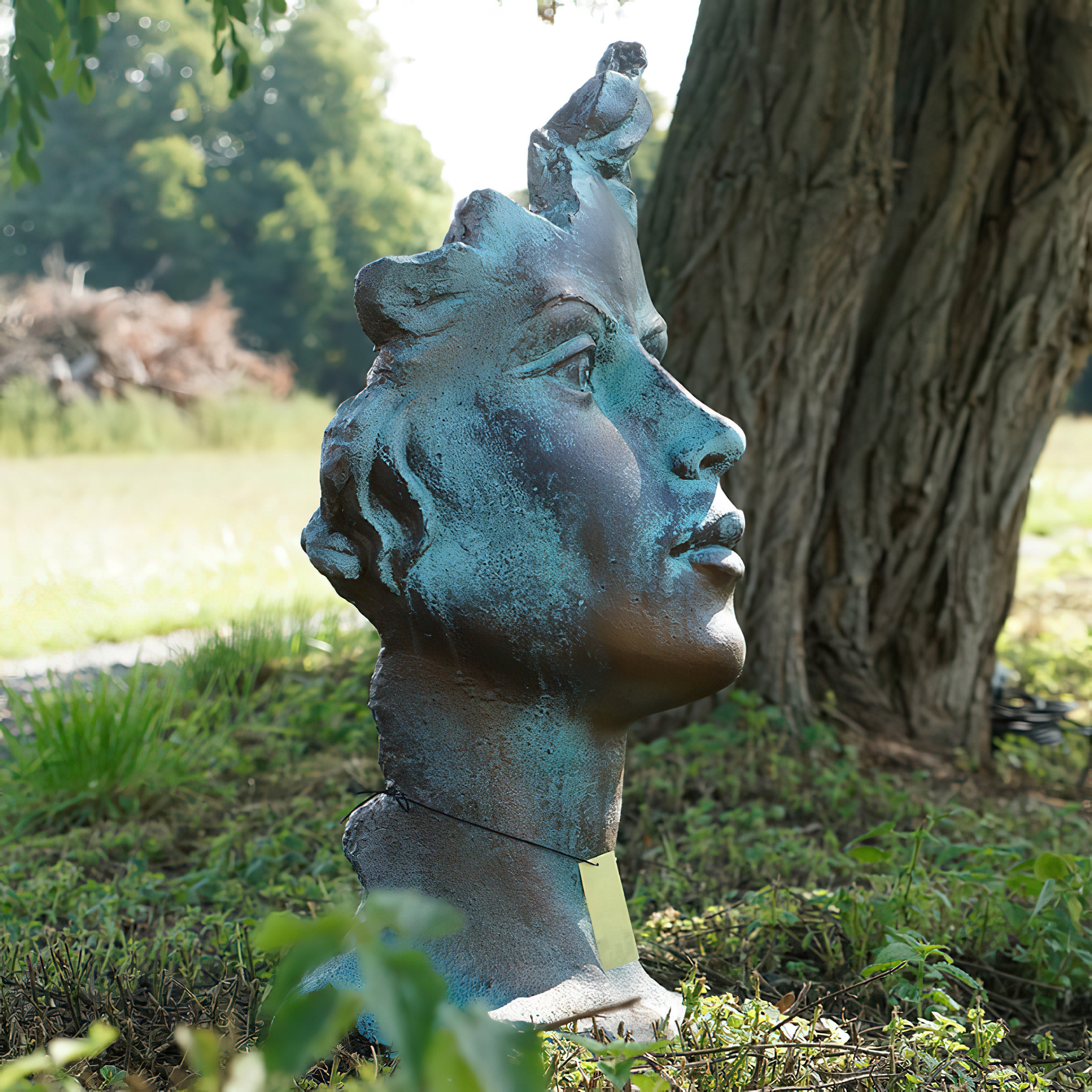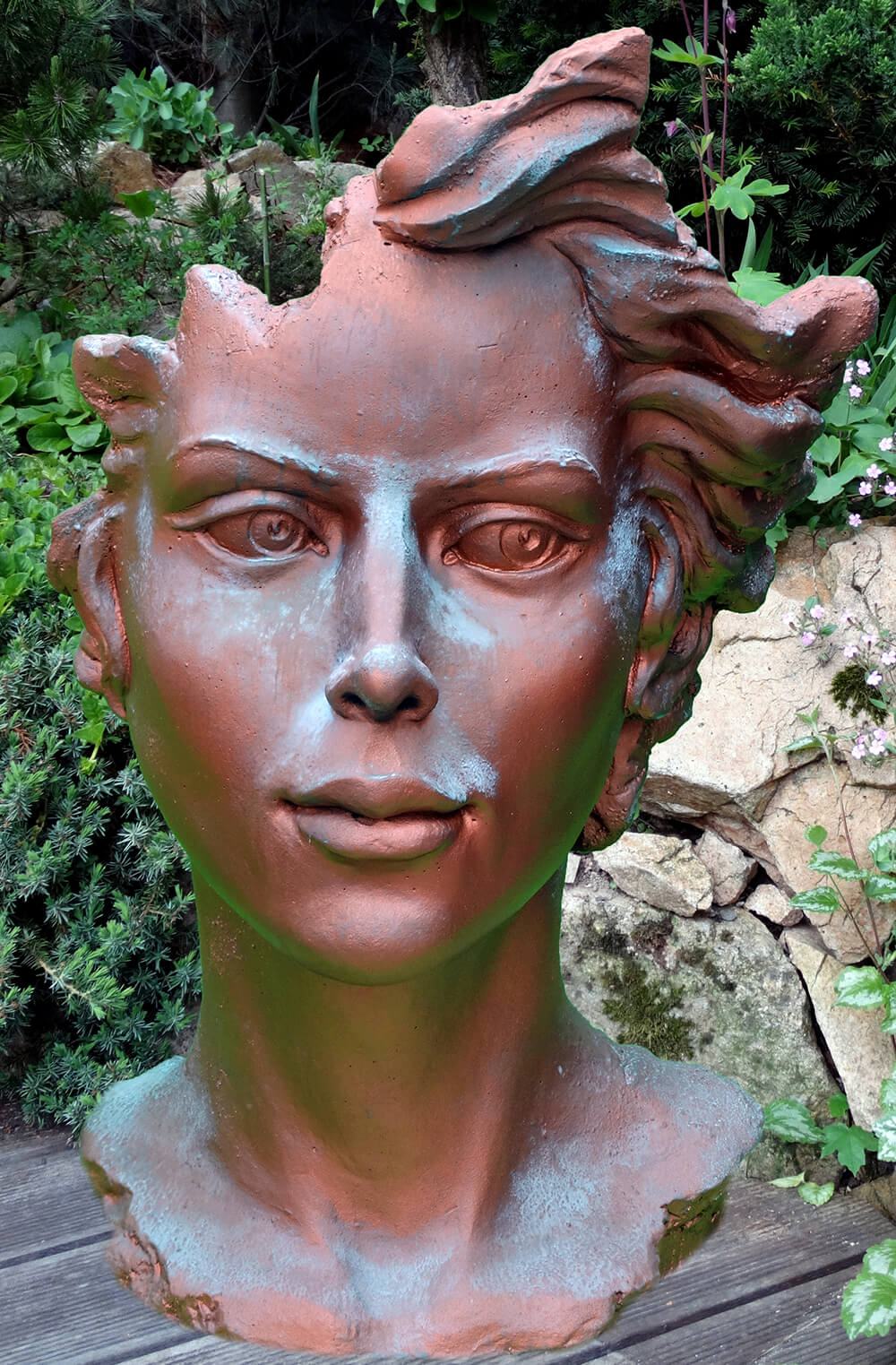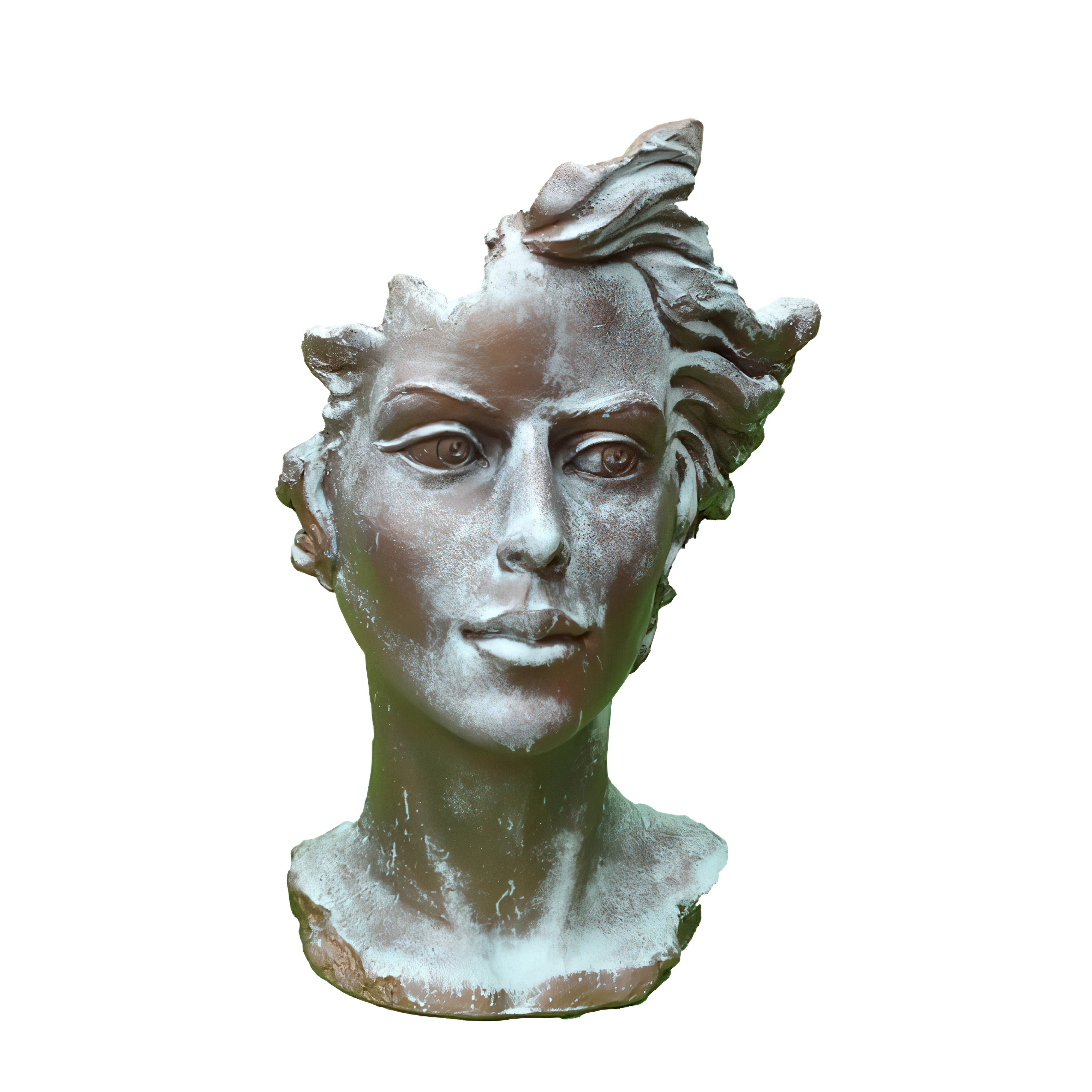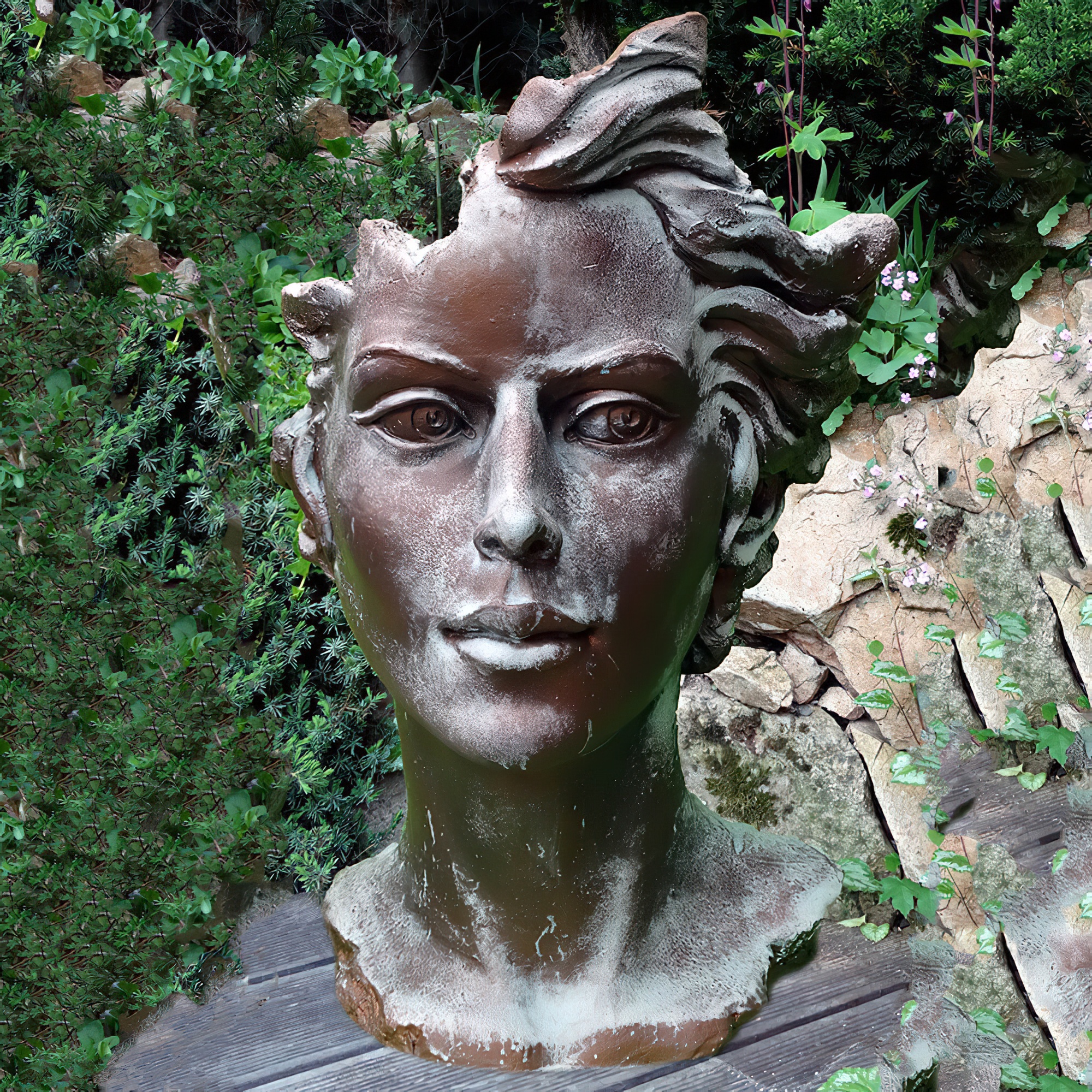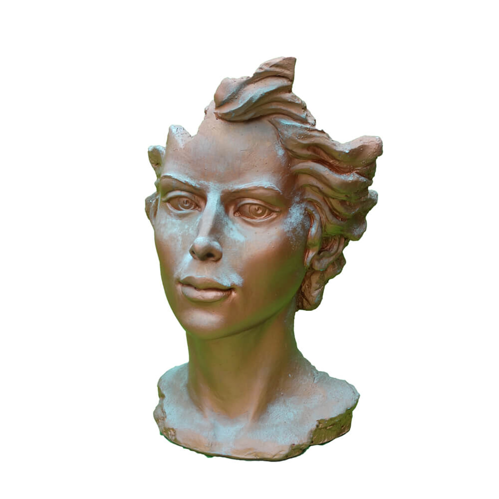 Moderne Gartenbüste mit Frauengesicht aus Steinguss - Calibri / Antikgrau