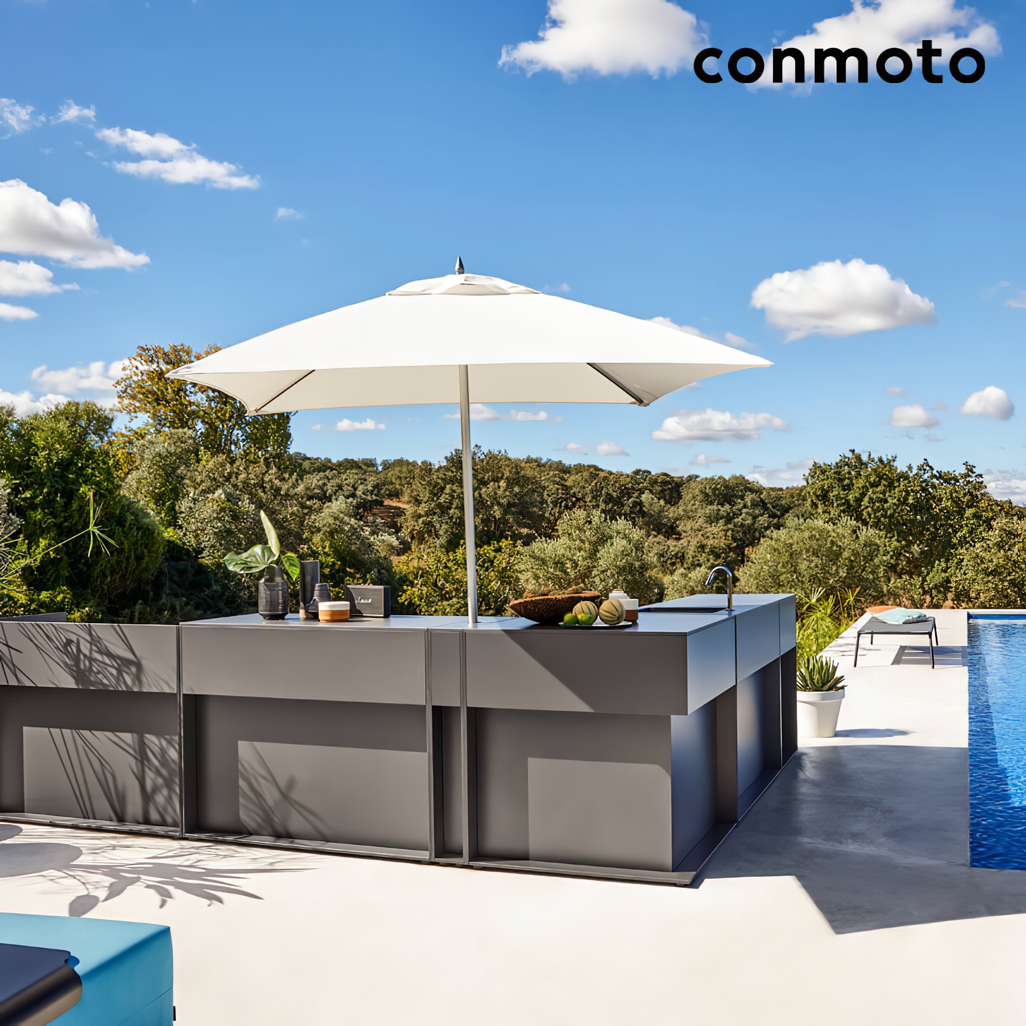 La cuisine d'extérieur est le complément idéal aux meubles de jardin de notre collection Conmoto et peut être librement combinée avec ceux-ci. Son design raffiné et sa grande robustesse soulignent la polyvalence de cette cuisine de jardin. Elle peut être utilisée aussi bien comme cuisine extérieure dans le jardin que sur la terrasse. La fabrication est possible en différentes tailles. Des variantes de couleurs personnalisées transformeront votre jardin en un lieu de détente unique. Nous serons heureux de vous fournir une offre sans engagement pour vos demandes spéciales.