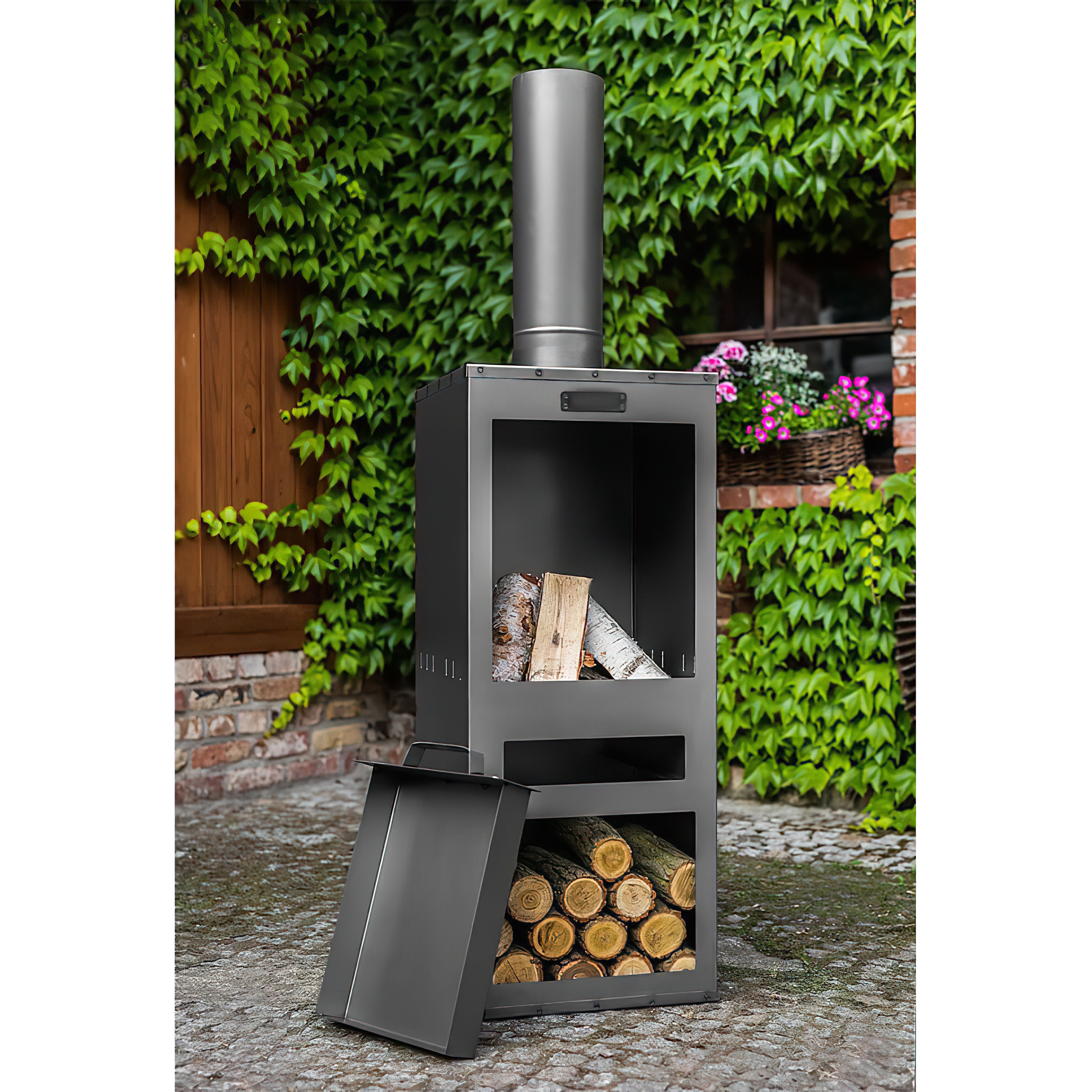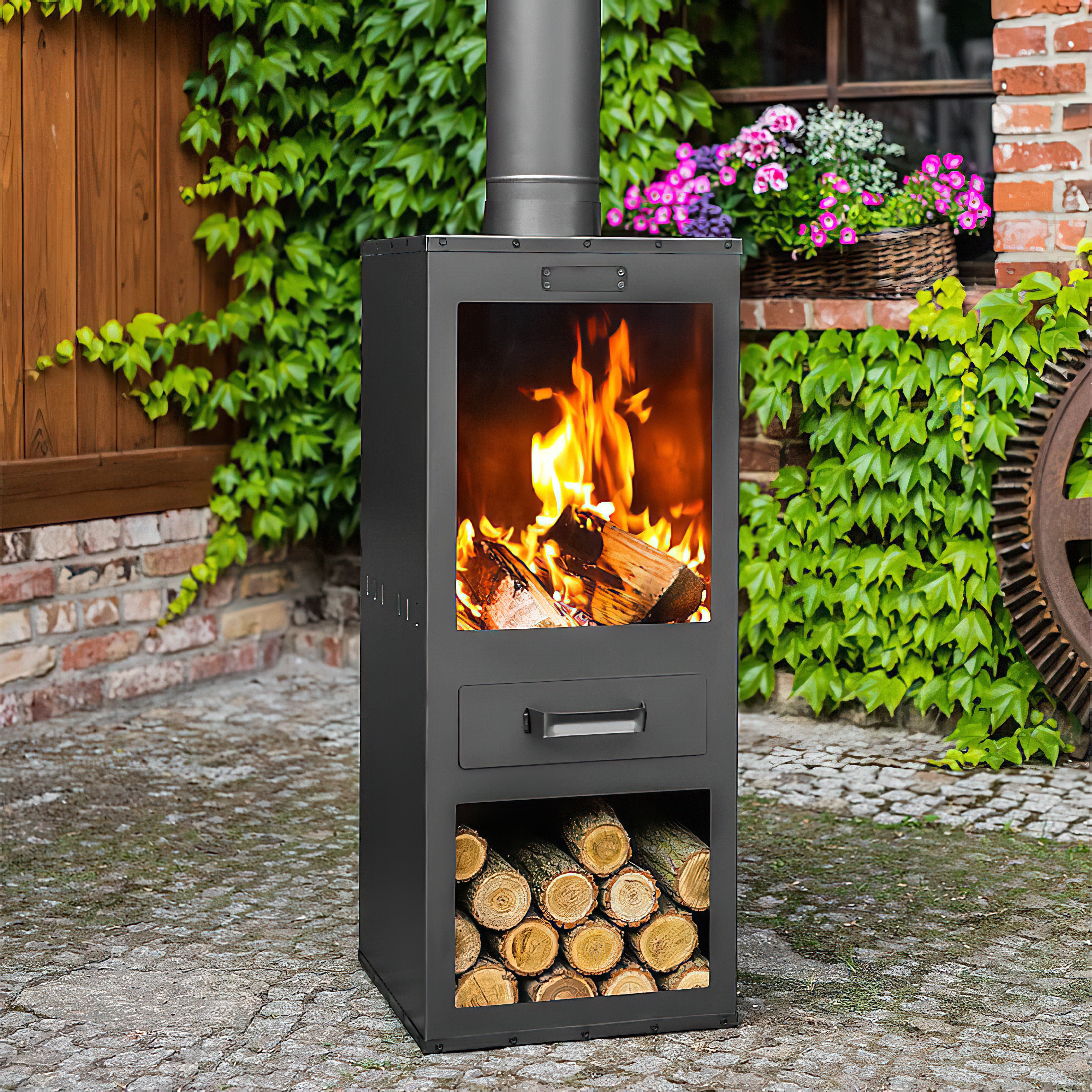 Poêle de jardin en acier noir