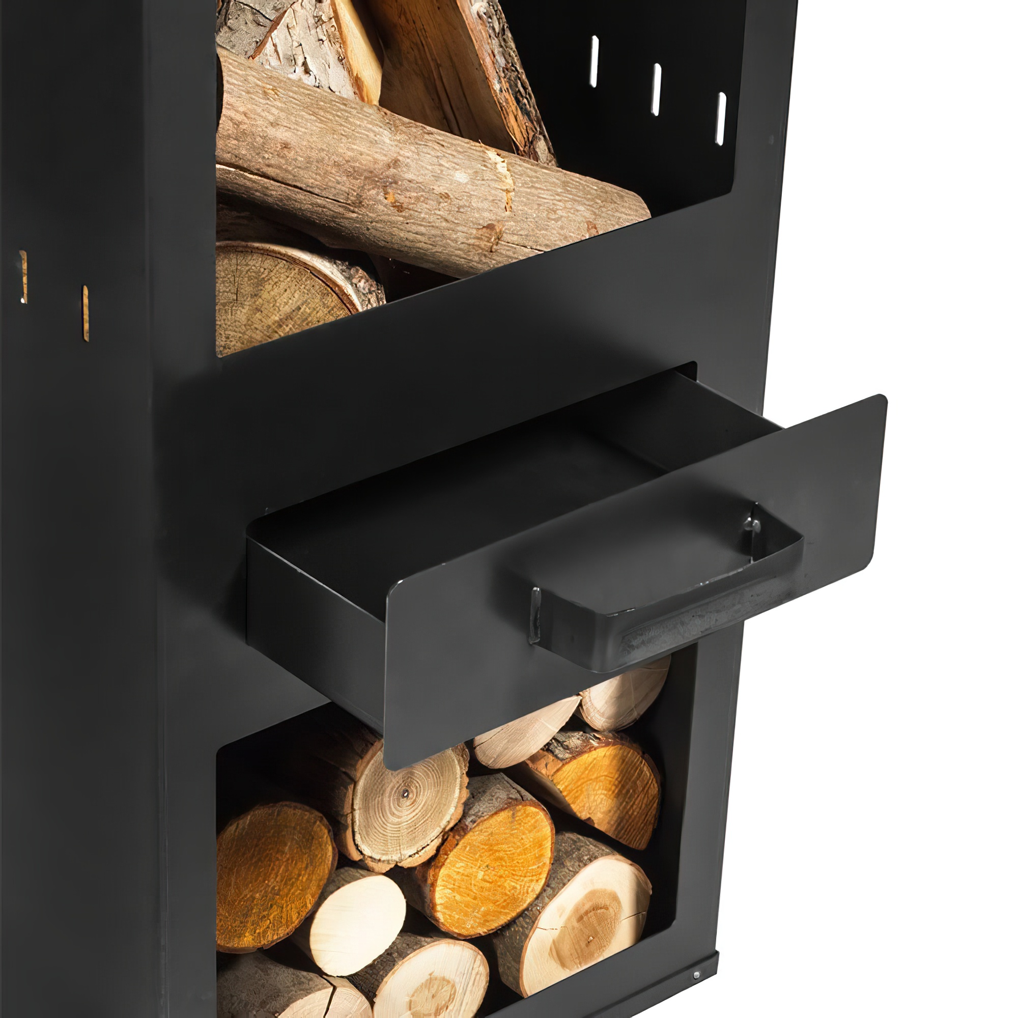 L'acier noir est un matériau très prisé pour la fabrication de braseros, barbecues et poêles de jardin. Ce type d'acier, également appelé acier brut ou acier naturel, développe une esthétique unique lors de sa mise en forme à environ 1200 degrés. La teinte de sa surface varie grâce à cette patine naturelle, rendant chaque poêle véritablement unique. Avec le temps, le brasero acquiert une belle patine rouillée, sans que cela n'affecte sa fonctionnalité ni sa durabilité. L'épaisseur des parois du poêle est de 1,5 mm. Sous la chambre de combustion, un espace de rangement pour le bois de chauffage permet également de protéger le sol de la chaleur intense. Pour profiter longtemps de ce magnifique produit, nous recommandons de le conserver à l'abri des intempéries lorsqu'il n'est pas utilisé.