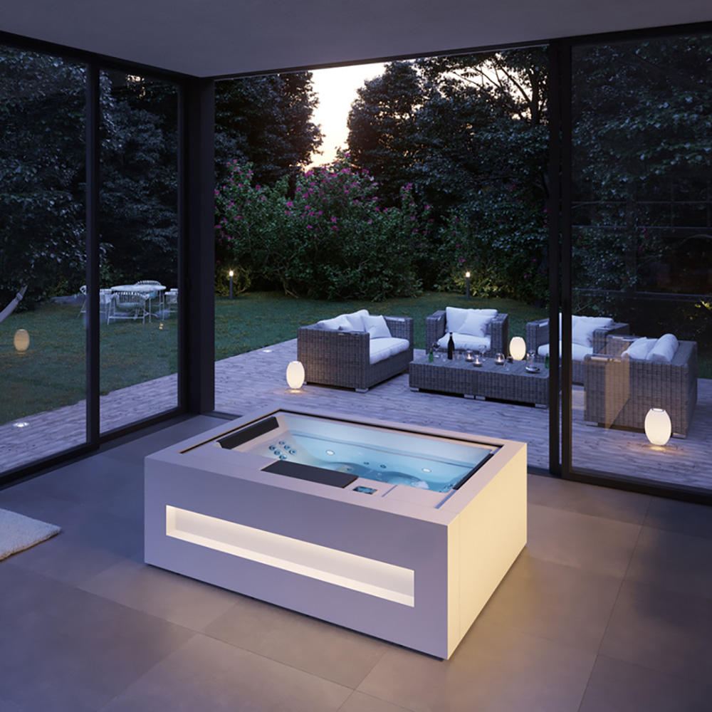Votre nouveau spa est adapté aussi bien pour une utilisation intérieure qu'extérieure. L'installation doit se faire sur une surface plane.
