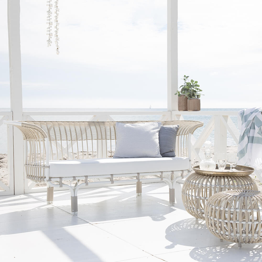 Modernes weißes Outdoor-Sofa aus Alu-Rattan - Gartensofa Enna / ohne Sitzkissen