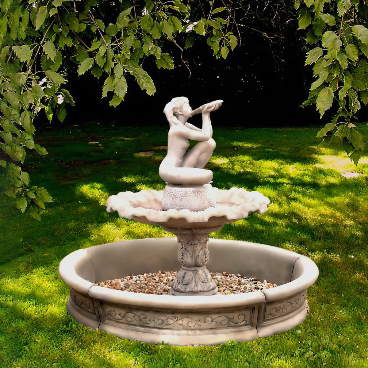Eindrucksvoll gestaltete Brunnen Umrandug aus Steinguss mit Vorsprüngen in Muschel Form - Bellissima / Antikia