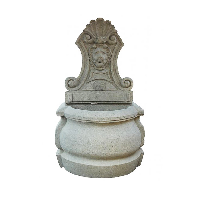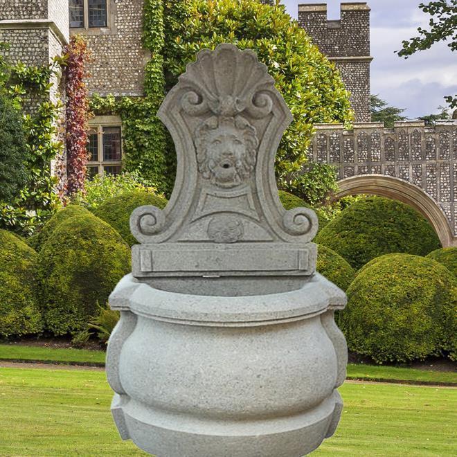 Apportez une touche d'élégance anglaise à votre jardin ! Offrez-vous une véritable romance de jardin avec notre nouvelle fontaine murale en pierre naturelle ornée d'une tête de lion en guise de bec verseur. La fontaine est disponible en plusieurs tailles, toutes sculptées à la main par notre artisan. Comme pour nos pierres de source, fontaines, cascades et bassins en pierre, ce produit est livré avec tout l'équipement nécessaire, notamment une pompe moderne, un système de tuyaux et le bec verseur. Il est également possible de raccorder la fontaine à un robinet standard.