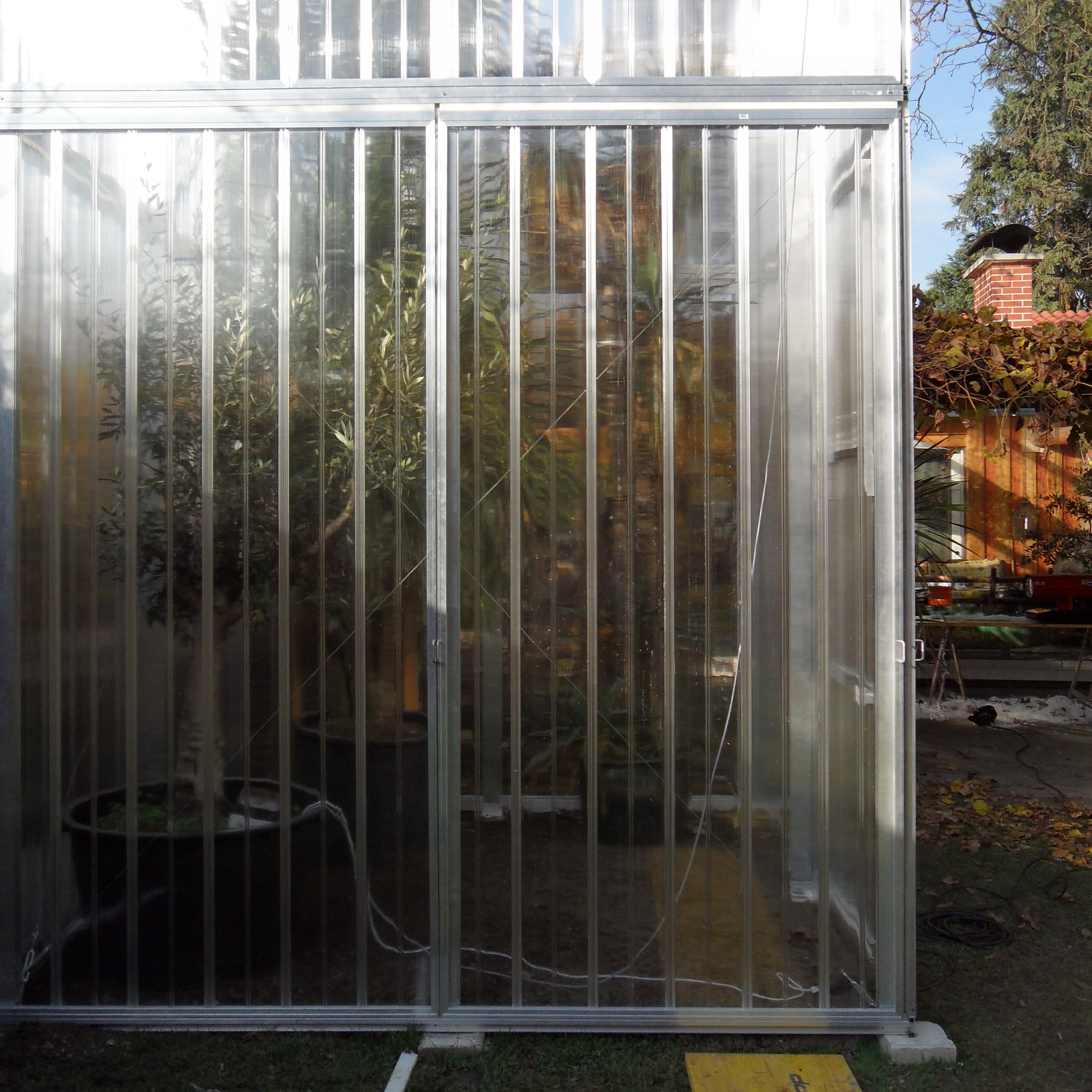 Pour éviter le gel des parties mobiles en hiver, un système de recouvrement et des joints brossés sont utilisés. Les montants sont munis de rainures en C permettant de tendre des cordes. En raison de leur conception destinée à maintenir l'humidité, nos serres ne conviennent pas comme vérandas.