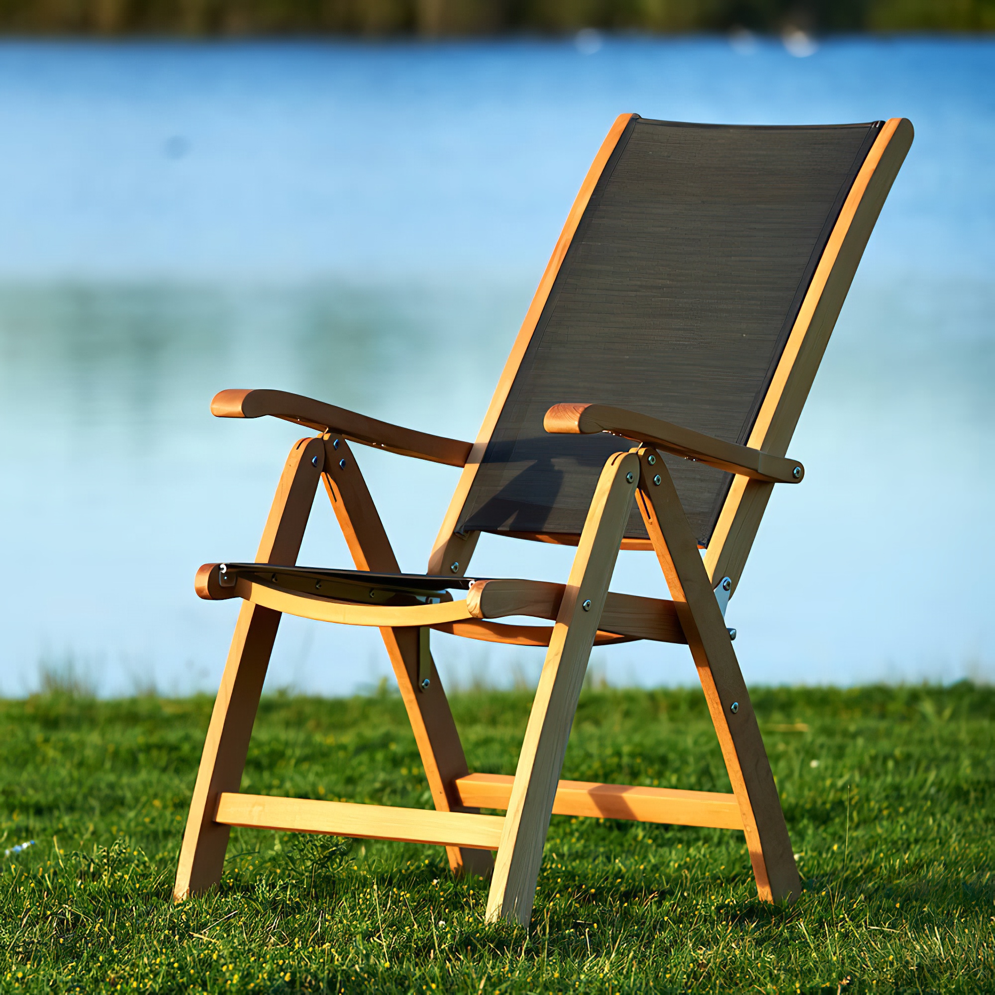 Pflegeleichter Garten Hochlehner aus Teakholz & Textilene - Harriett Hochlehner / Schwarz