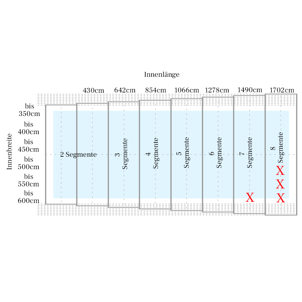 Poolüberdachung mit geringer Dachwölbung - Sonderanfertigung - Aluminium & Polycarbonat - Tansanit Medium / 2 Segmente - 350x430cm (BxL)