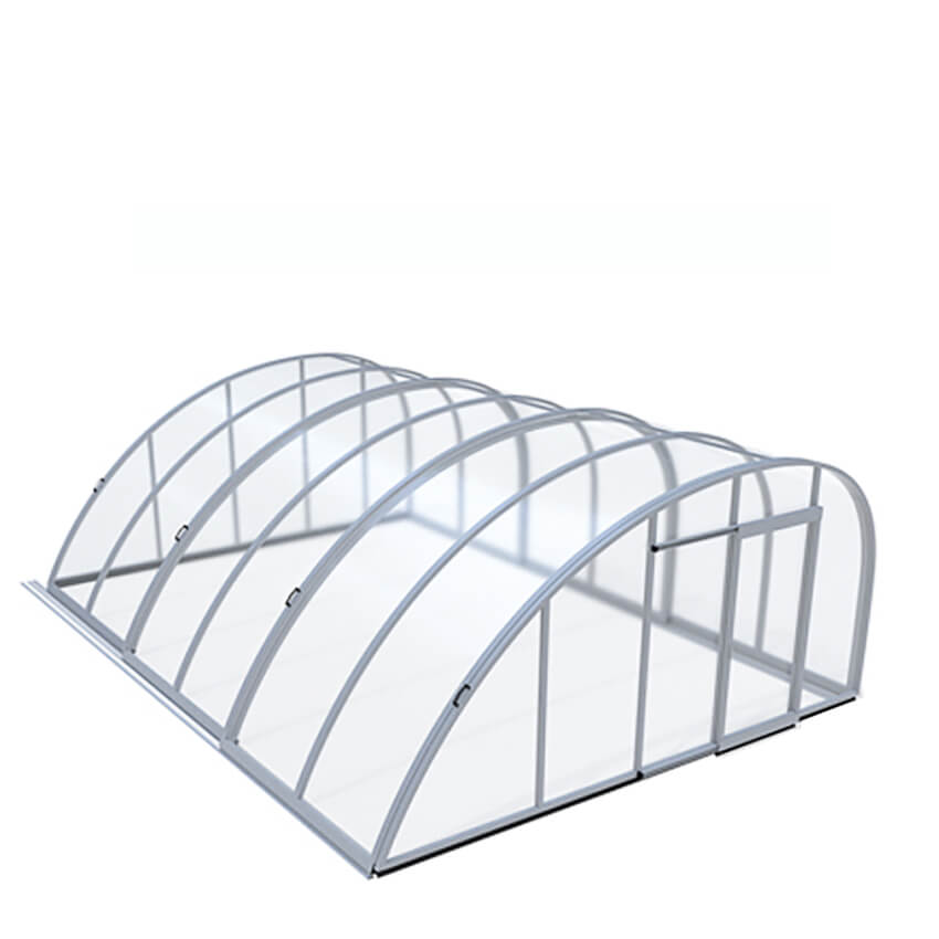 Poolüberdachung mit schräger Wölbung - aus Aluminium & Polycarbonat - Sonderanfertigung - Rubin Obliquo / 2 Segmente - 400x430cm (BxL)