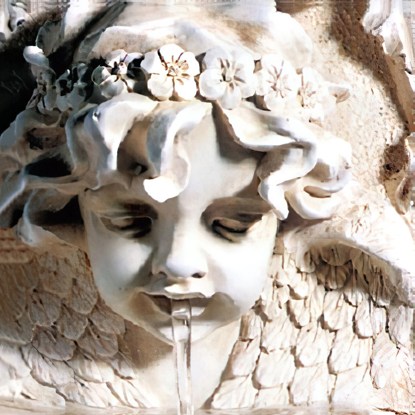 Romantischer Steinguss Wandbrunnen mit Gesicht - Antonia / Etna