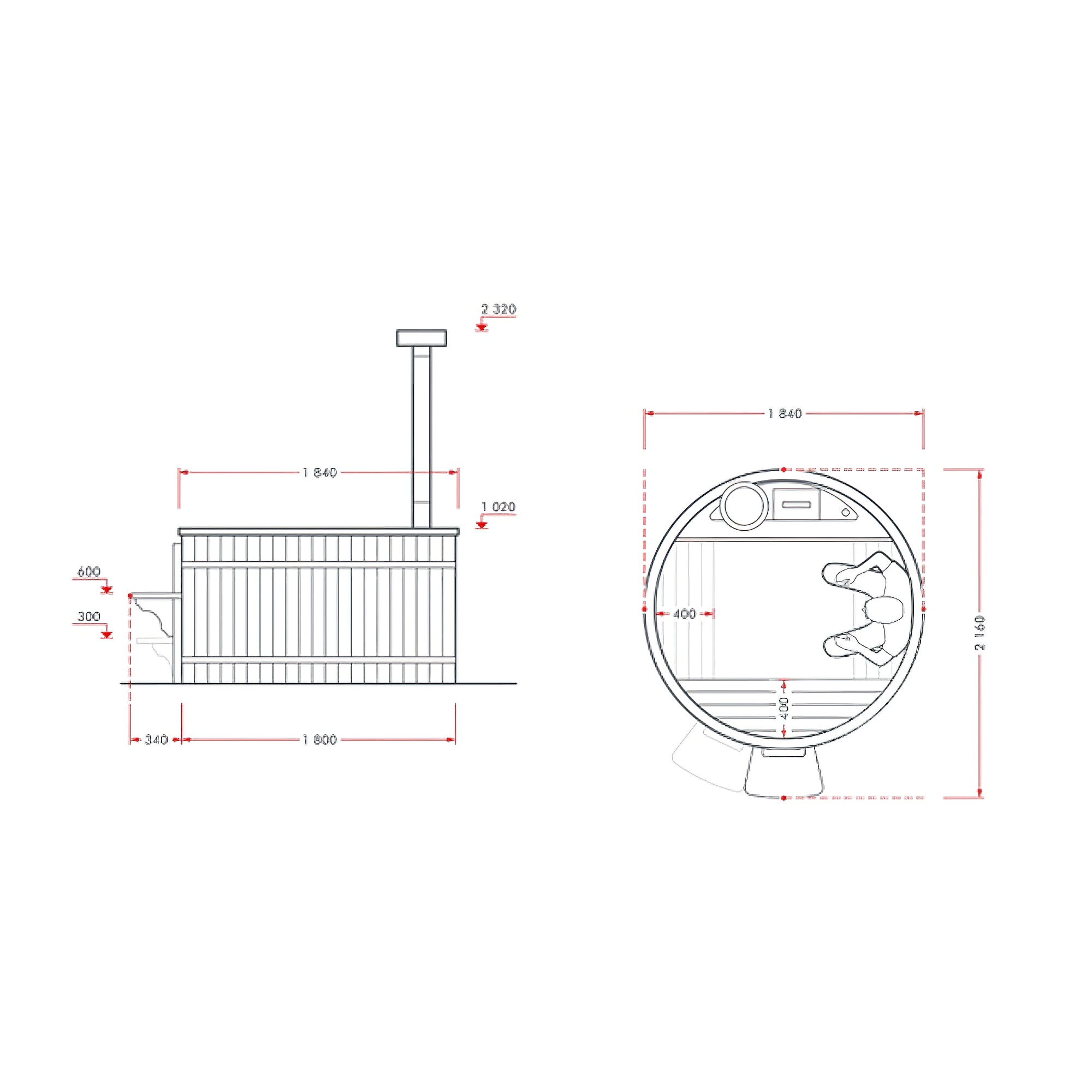 Le tonneau de sauna est livré avec un équipement complet et soigné. Des souhaits supplémentaires de design et d’équipement ainsi que des solutions de bien-être sur mesure sont possibles. Voici un aperçu de l’équipement standard :