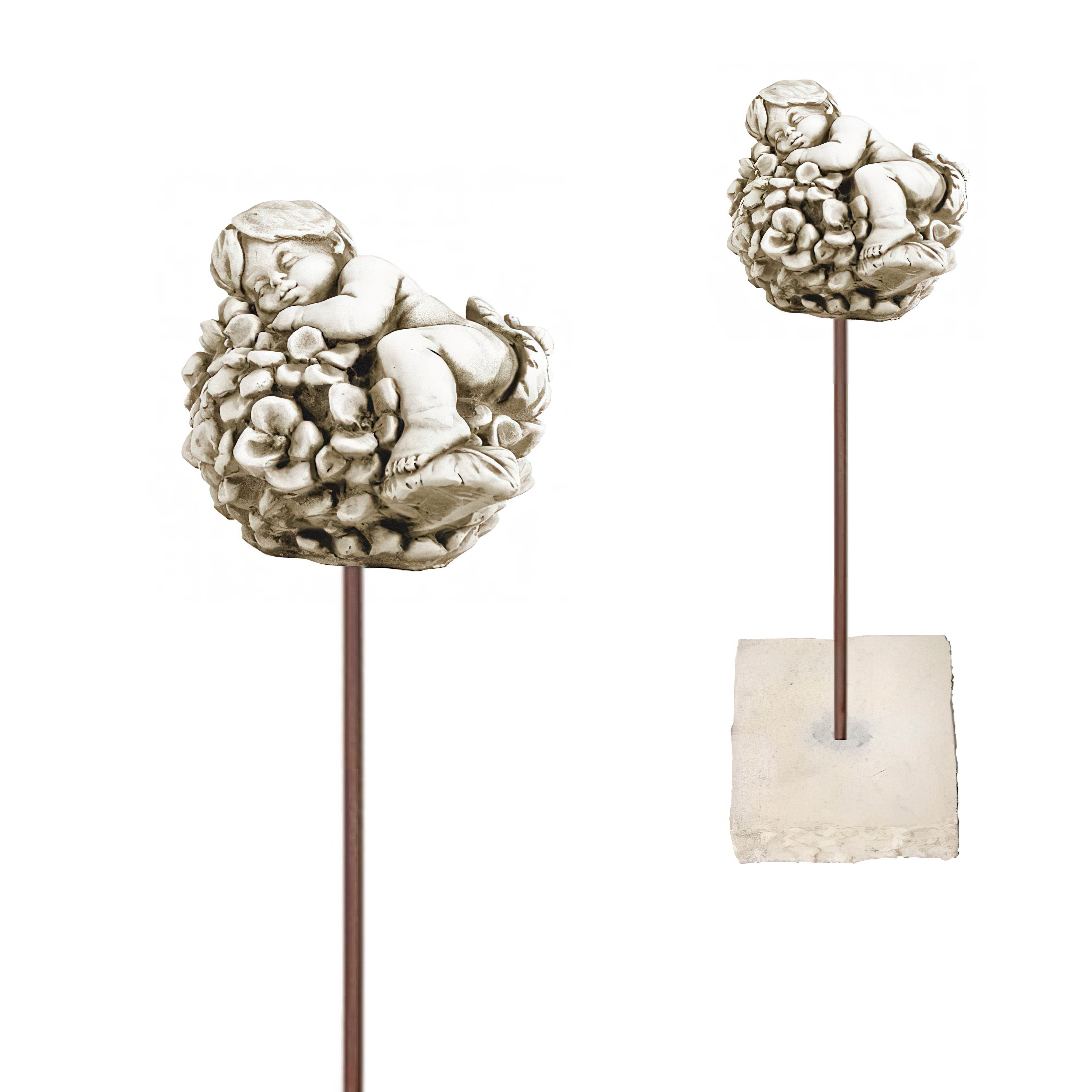 Schlafender Blüten Junge aus Steinguss antikgrau - Sinereus / ohne Stab