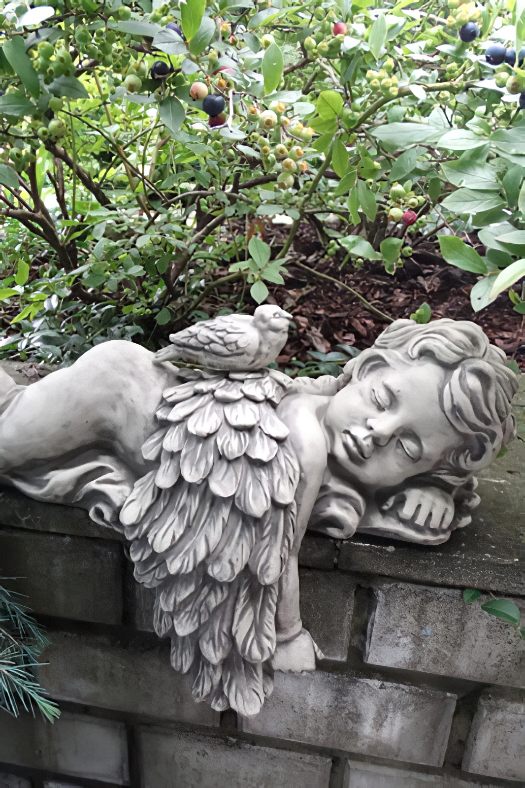 Schlafender Engel aus Stein als Gartendekoration - Angelus Columba