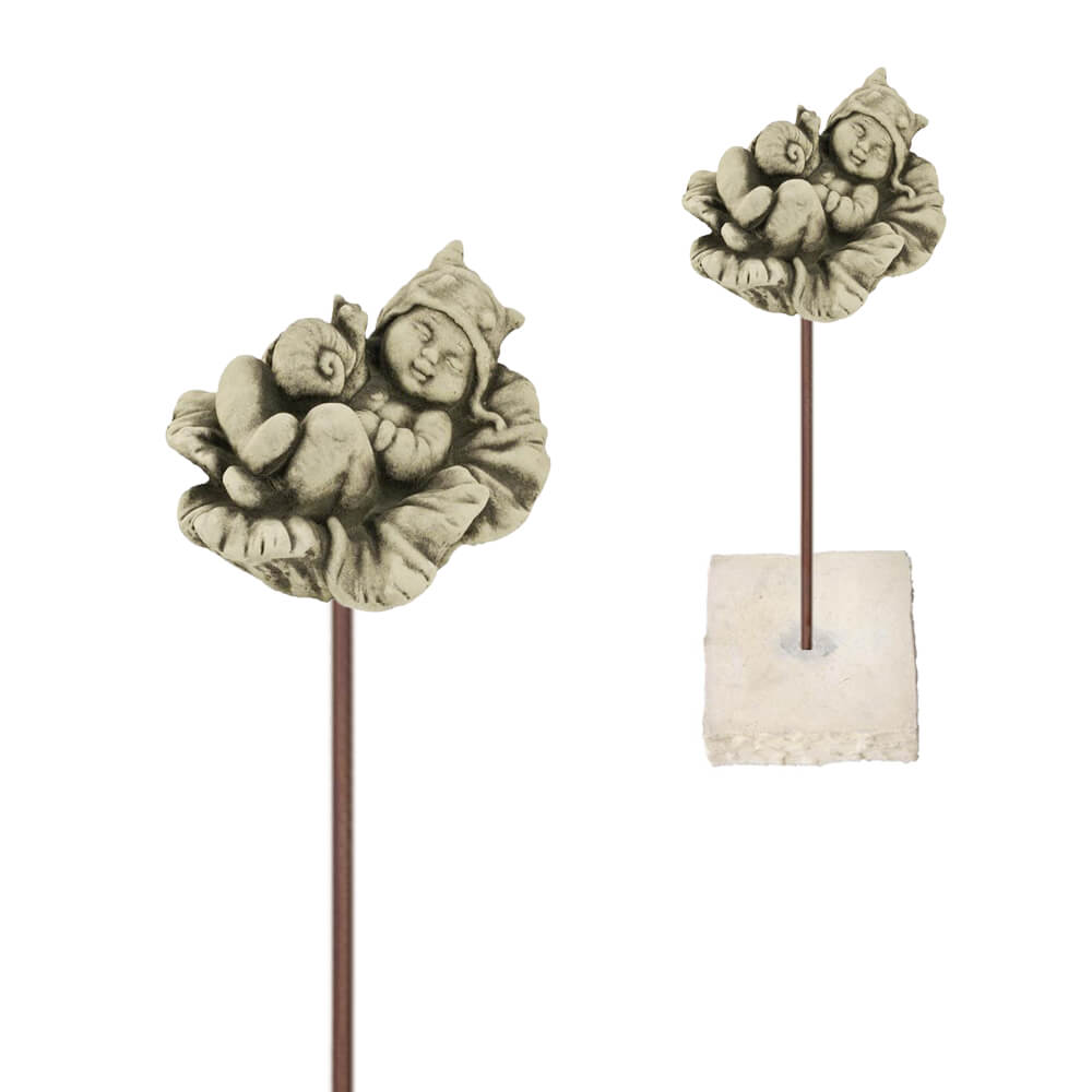Schlafender Garten Wichtel aus Steinguss - Phineus Columba / ohne Stab