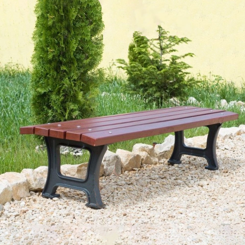 Schlichte Sitzbank aus Holz und Metall ohne Rückenlehne - Flemming