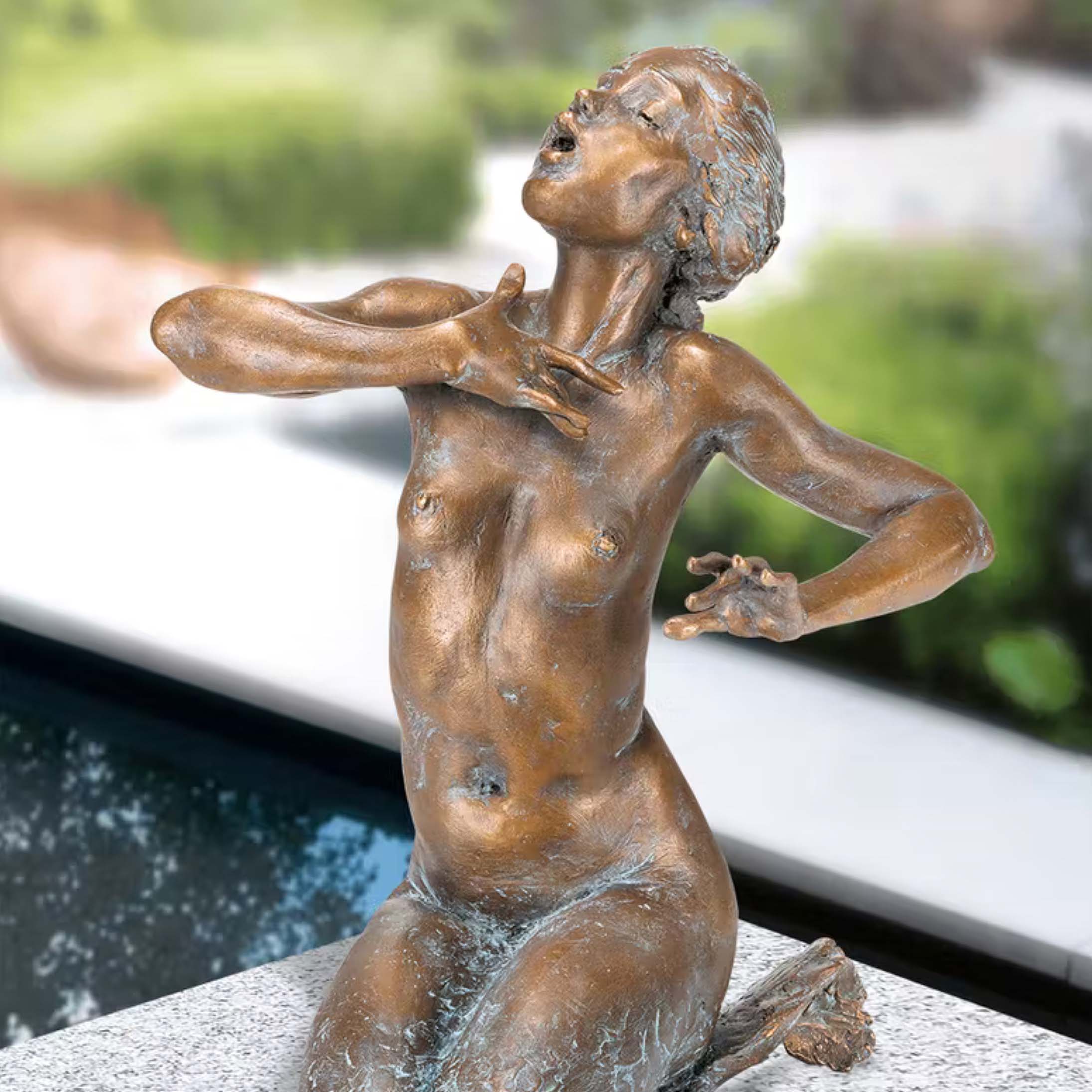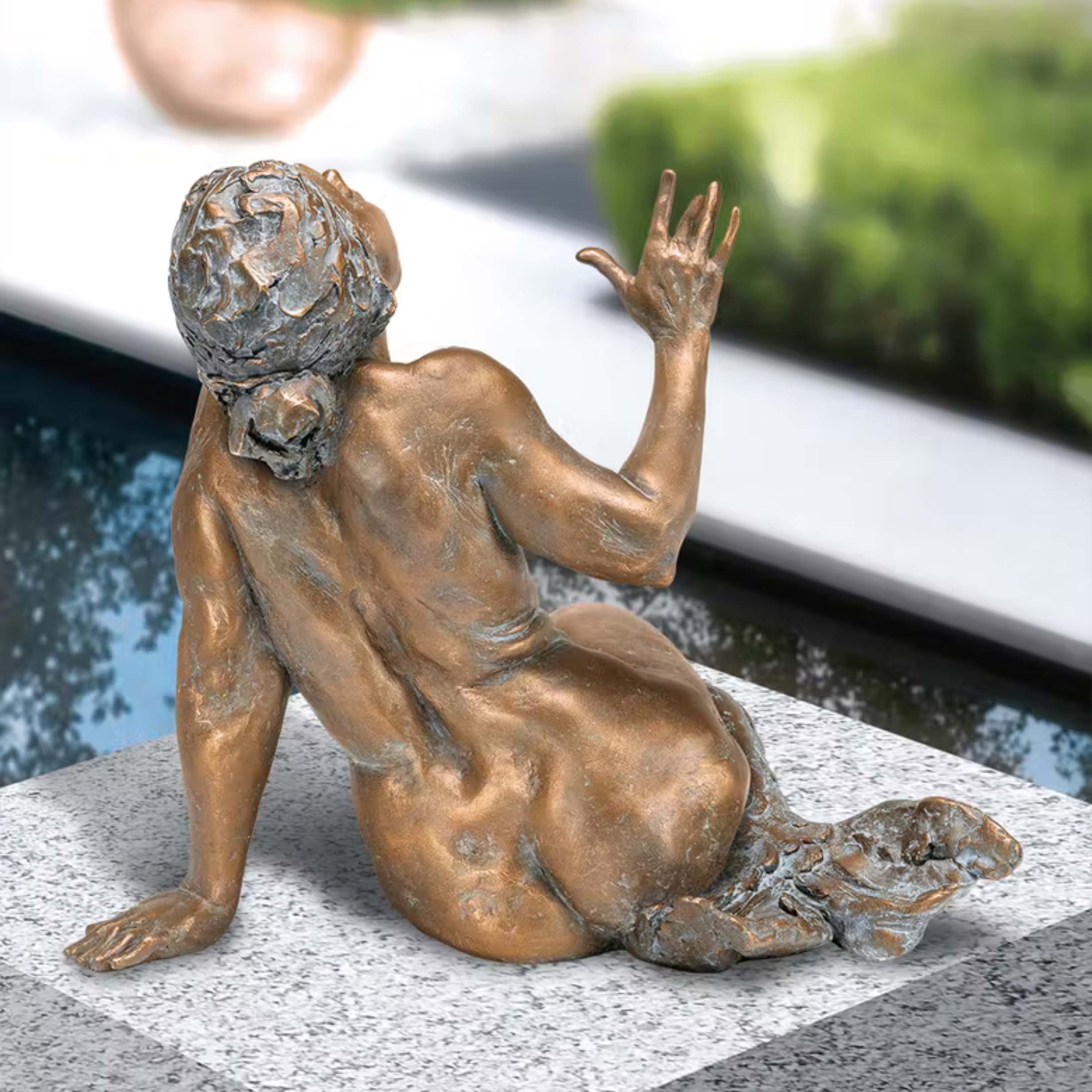 Tout au long du processus de fabrication, des contrôles stricts sont effectués par l'artiste de la sculpture en bronze. Celui-ci retravaille régulièrement les moules, les pièces brutes ainsi que la sculpture finie à la main. La limitation imposée par l'artiste pour chaque figurine de jardin est rigoureusement respectée, ce qui rend ces sculptures particulièrement prisées des collectionneurs et amateurs de statues en bronze rares. Chaque statue de jardin est accompagnée d'un certificat signé à la main par l'artiste, indiquant l'année de création, la limitation, le numéro d'exemplaire ainsi que la composition du matériau. Le métal est extrêmement résistant au gel, à l'humidité et à la chaleur, garantissant une grande durabilité. La patine, appliquée manuellement, confère à chaque sculpture une unicité grâce à ses nuances de couleur variables. La teinte peut donc légèrement différer de l'image. Le nettoyage doit s'effectuer sans produits chimiques afin de préserver la couche protectrice, simplement avec un chiffon humide. Les statues de jardin sont équipées de trous à leur base pour fixation sur un socle, avec des goujons filetés fournis. Grâce à la coulée creuse, les sculptures restent relativement légères malgré le bronze massif, ce qui permet de les installer facilement partout.