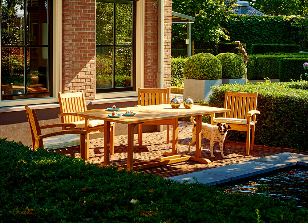 La collection Imperial Teak propose des chaises, tables et bancs de jardin fabriqués avec un savoir-faire exceptionnel. Seul du teck provenant de plantations gérées durablement et de fournisseurs certifiés est utilisé pour ces meubles. Chaque pièce est finement travaillée dans les moindres détails. Tous les éléments de connexion, charnières et parties en bois sont réalisés avec une précision artisanale remarquable. La durabilité, le design et la fonctionnalité sont au cœur de la fabrication, vous garantissant un plaisir durable avec ces meubles intemporels et de grande qualité.