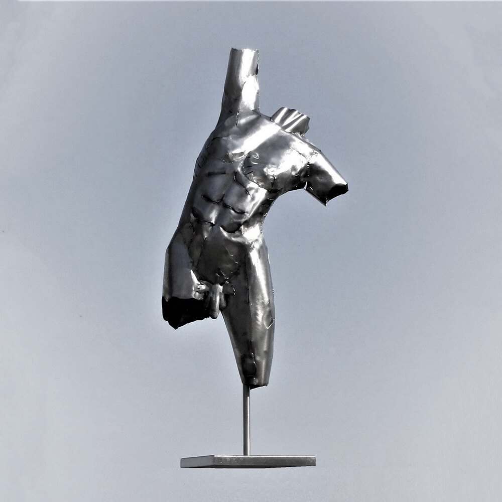 Statue eines männlichen Torso in Rost oder Edelstahl - Trofano / Stahl - Rost