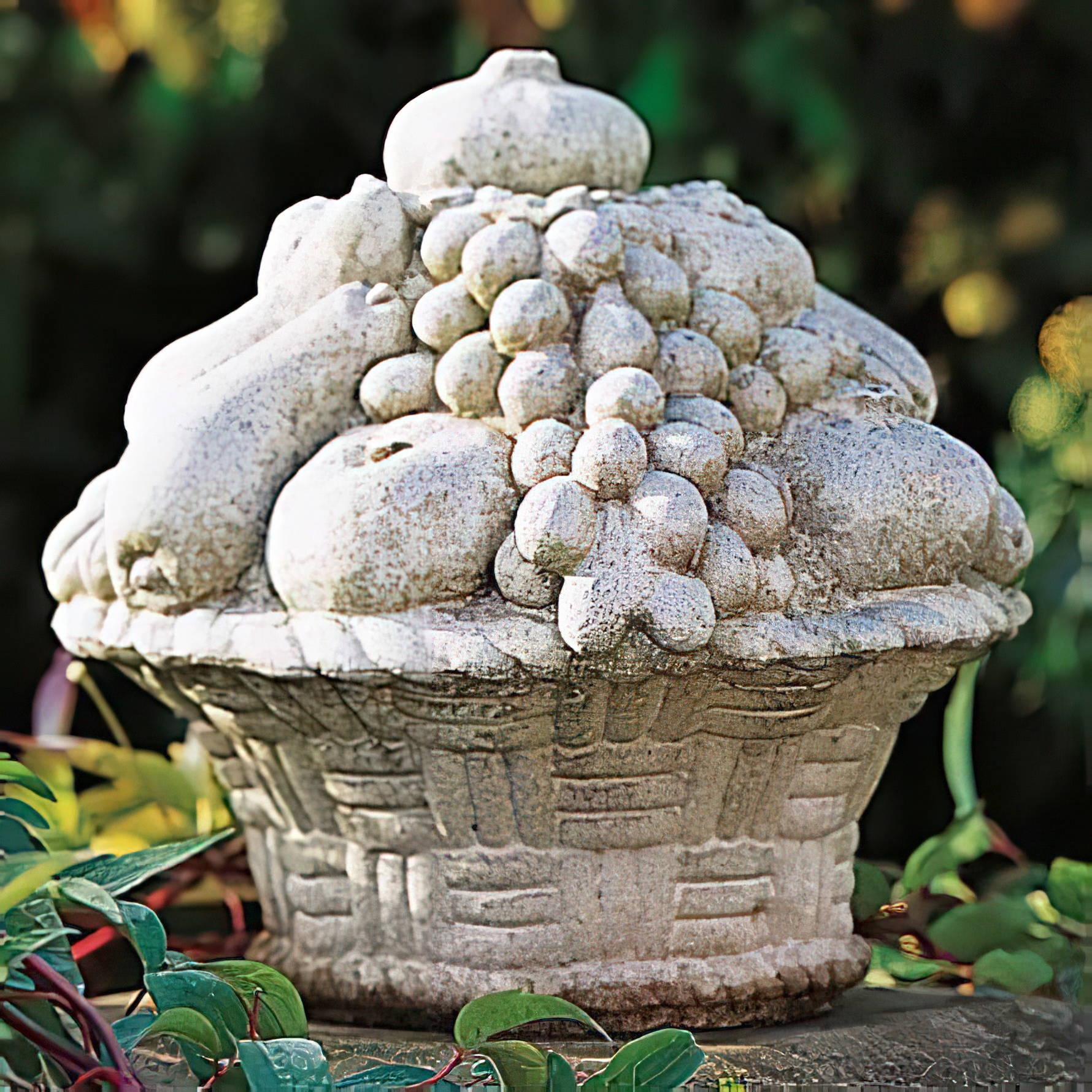 Ce petit panier de fruits en pierre est parfait pour décorer une table en pierre ou orner une balustrade dans votre jardin. Le panier est orné d'un joli tressage et rempli de fruits mûrs. Nos décorations de jardin sont fabriquées en pierre moulée selon la méthode traditionnelle, ce qui les rend résistantes aux intempéries et adaptées à l'hiver. Pour toute question ou demande, n'hésitez pas à nous contacter par téléphone ou par e-mail.