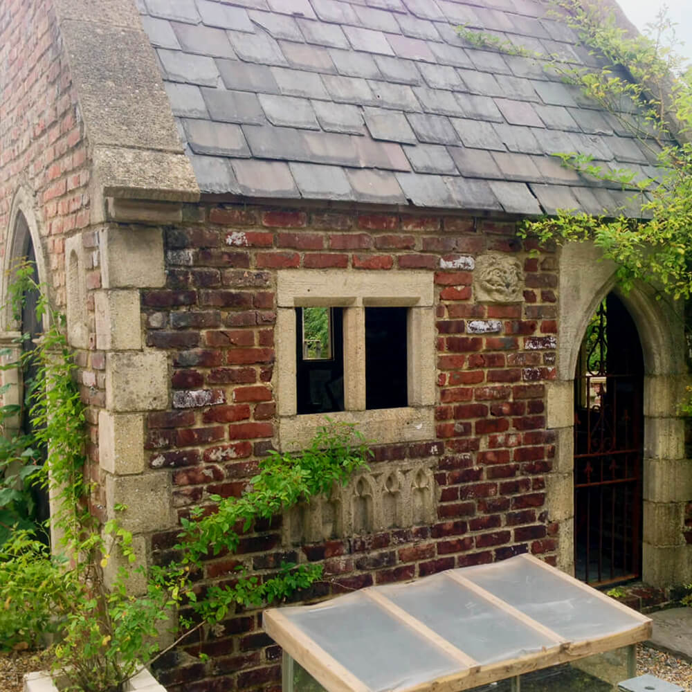 Les ornements en pierre de ce pavillon Folly sont fabriqués selon un procédé complexe de moulage en pierre, soigneusement coulés à la main, finement travaillés et patinés. Notre chapelle en ruine Exford Chapel est résistante aux intempéries et au gel, garantissant que cette maison en pierre antique ne subira aucun dommage même en hiver rigoureux. Nous expédions ce pavillon de jardin en pierre sous forme de kit, comprenant les ornements en grès et les briques en terre cuite correspondantes. Une notice de montage est jointe à la livraison, vous permettant de construire vous-même les murs en ruine et les éléments de fenêtres de cette chapelle gothique avec un peu d'habileté manuelle.