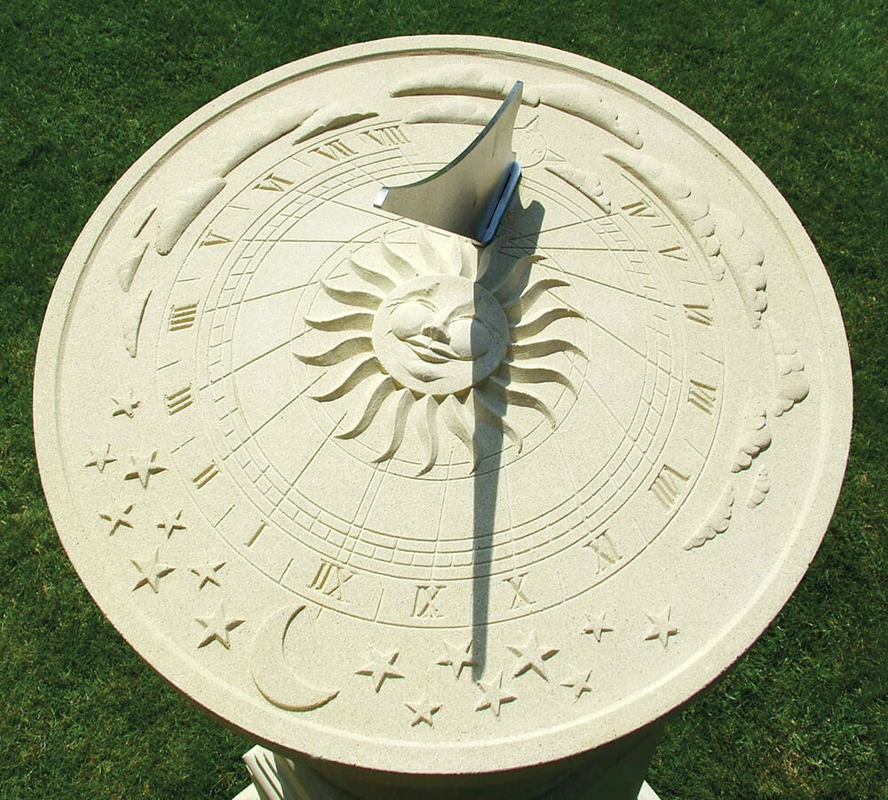 Stein Stand Sonnenuhr mit Gravur und Sockel - Cenwulf Park / Sand / Sphärische Sonnenuhr