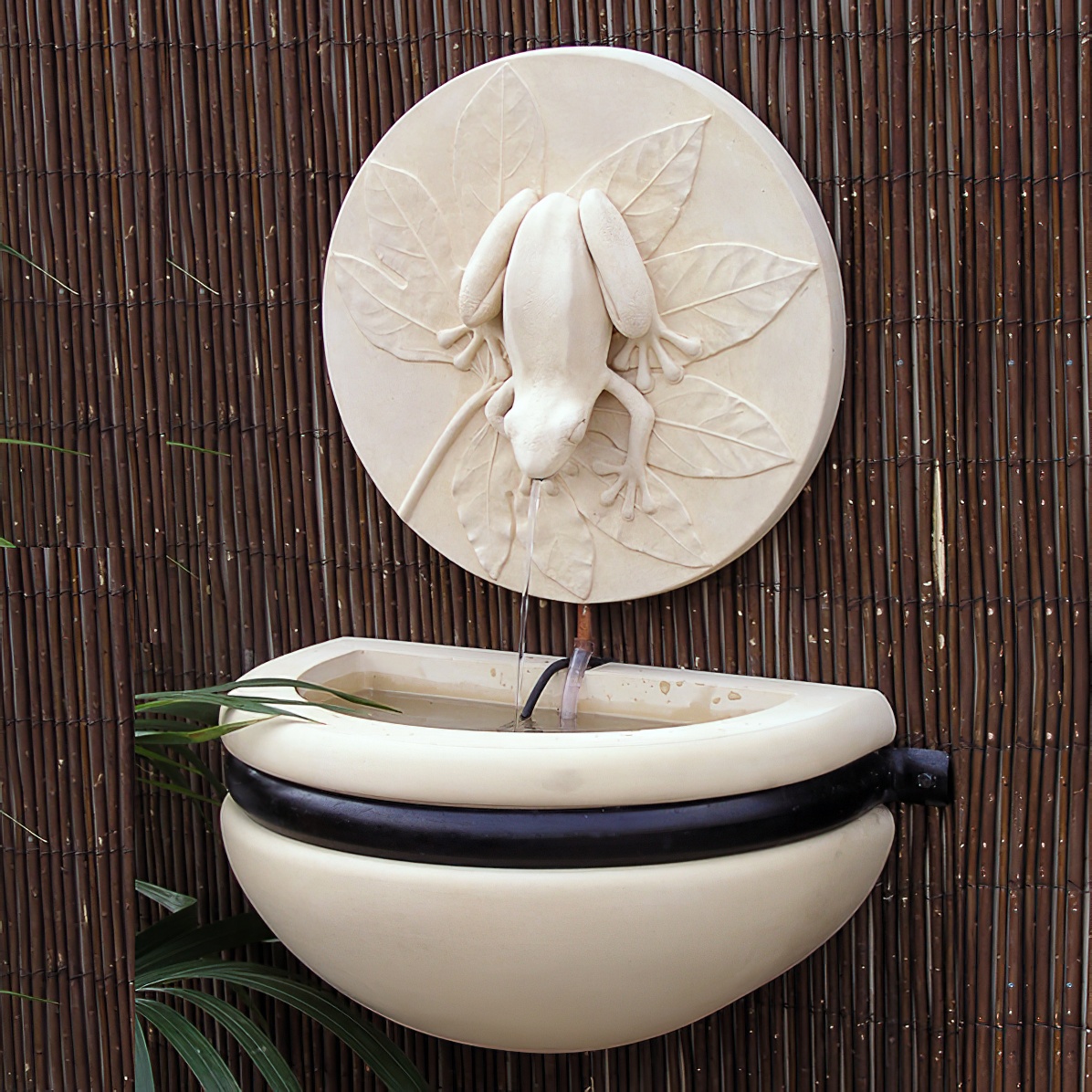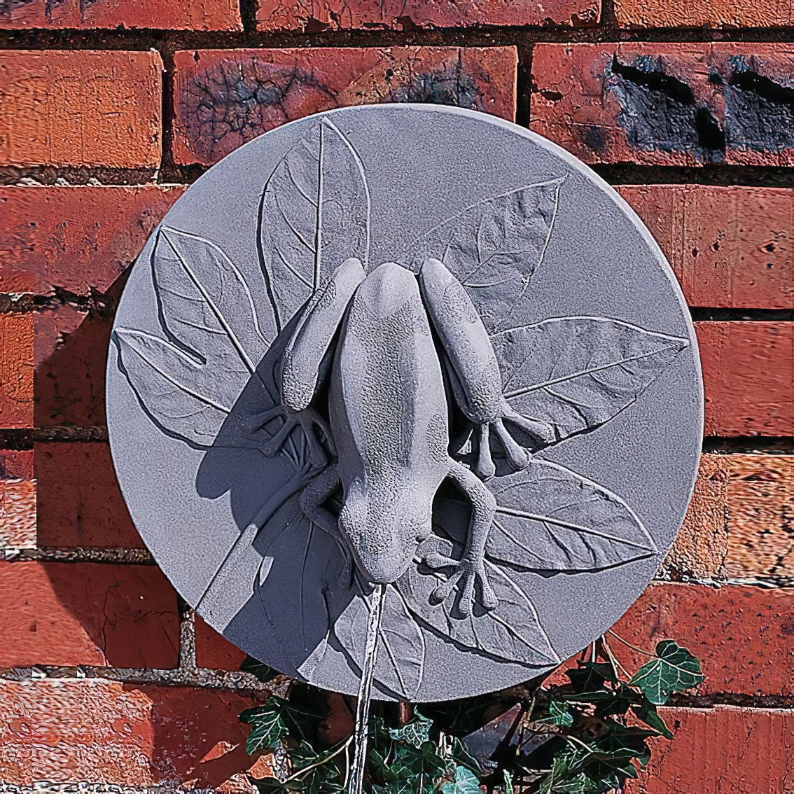 Cette fontaine murale en pierre moderne est fabriquée à la main dans une manufacture anglaise traditionnelle. Le matériau utilisé est un moulage en pierre de haute qualité. Ce moulage en pierre est résistant aux intempéries et au gel, mais il est conseillé de vider complètement les conduites d'eau pendant la période de gel. Embellissez également votre jardin avec cette magnifique fontaine murale ornée d'un motif rafraîchissant de grenouille.