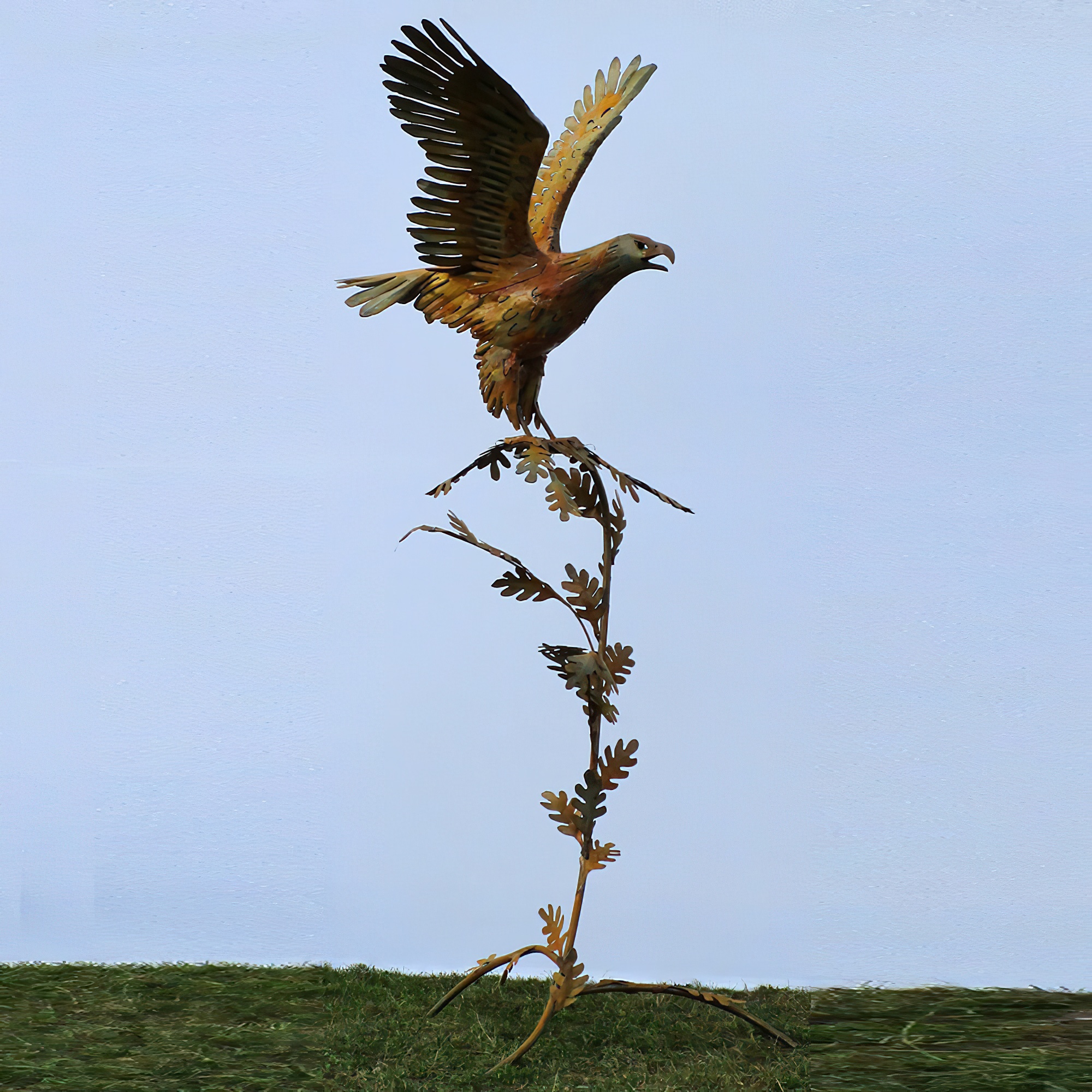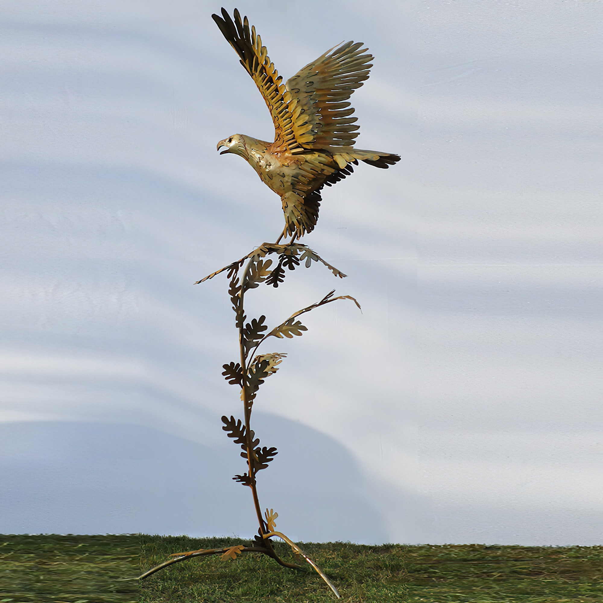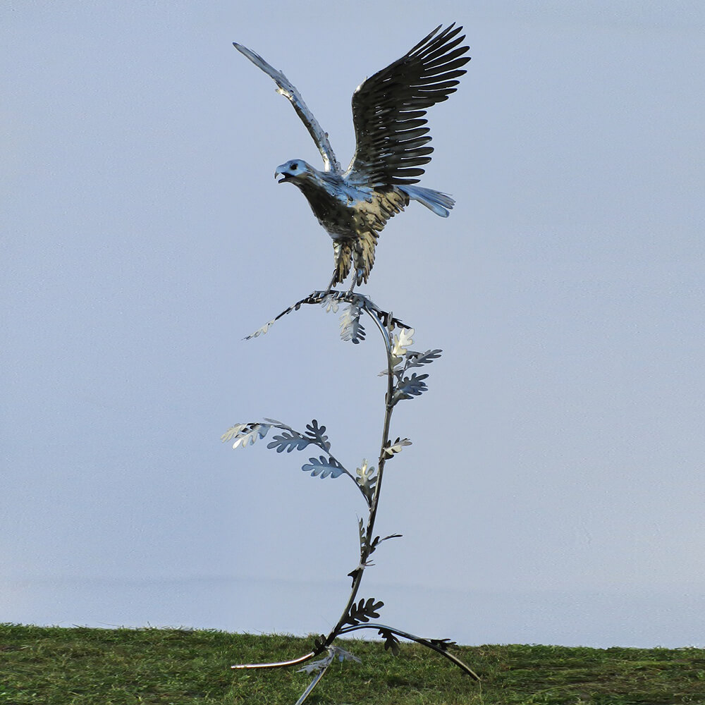 Steinadler am großen Ast - XXL Gartenfigur aus Metall - Aquila Aurea / Stahl - Rost