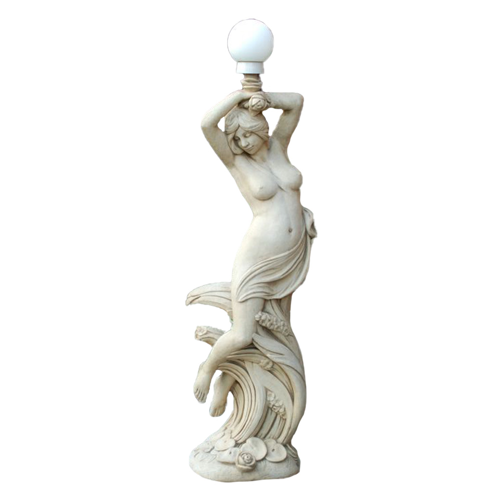Steinguss Dekoskulptur - Frauen Aktfigur mit Gartenleuchte - Anastasia / Olimpia