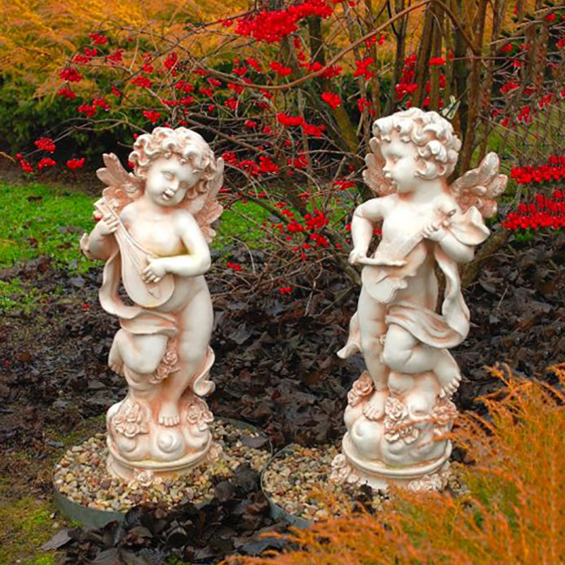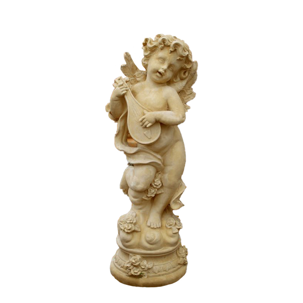 Steinguss Garten Engel mit Mandoline - musikalische Dekofigur - Alessandro / Olimpia