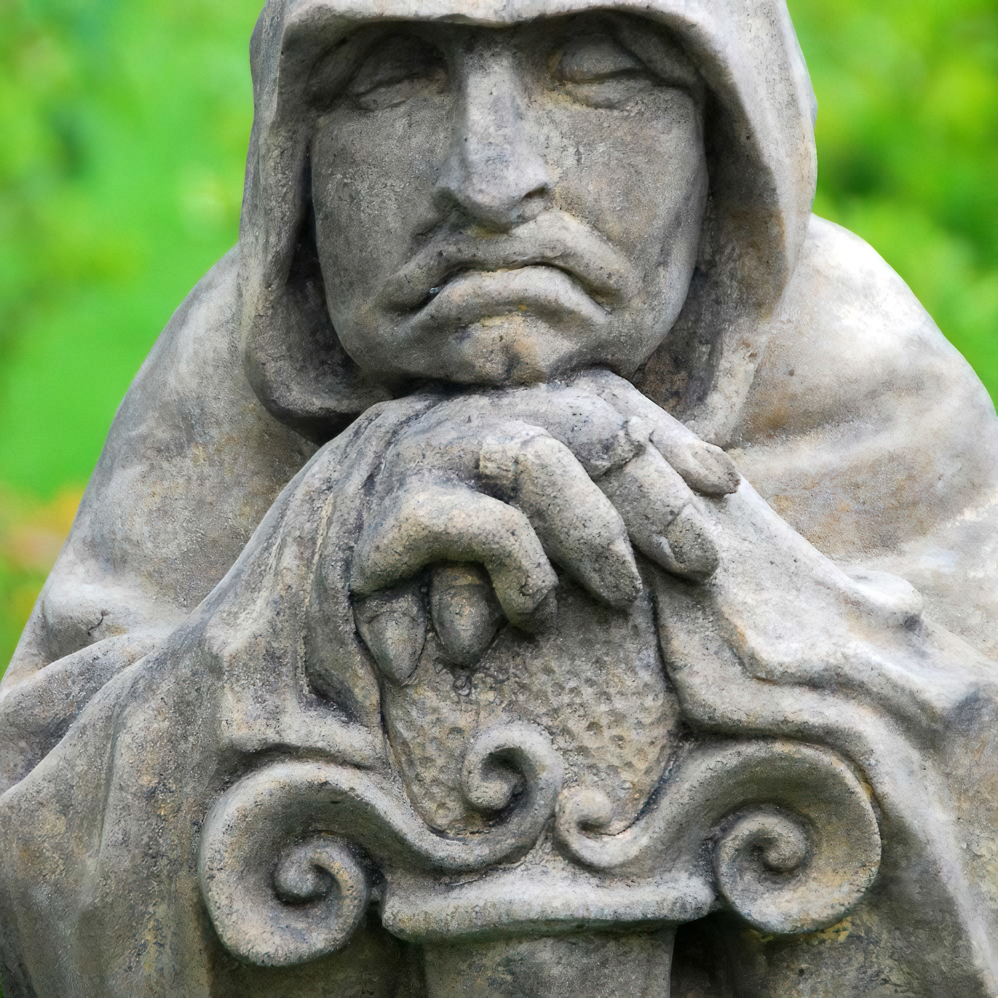 En tant que spécialistes des sculptures en pierre, nous sommes ravis de vous accueillir dans notre boutique de rêve pour le jardin. Nous sommes heureux que vous vous intéressiez à notre lutin de jardin en pierre moulée "Macbeth". Vêtu d'une robe de moine gothique, ce petit lutin avance mystérieusement et avec une certaine importance dans le jardin, conjurant les insectes et les limaces de rester loin de la laitue et des fraises. Appuyé sur son épée, le visage renfrogné, ce gardien de jardin semble se demander s'il n'a pas été reconnu. Avec cette idée de décoration à la fois effrayante et belle, vous apportez la mystique du comté anglais de Devonshire directement dans votre jardin. Aménagez votre propriété avec des créatures légendaires telles que des lutins de jardin, des gargouilles en tant que gardiens de portail, des kobolds et des gnomes, et créez un royaume féerique à votre image. Nous proposons ce lutin de jardin en différentes finitions en pierre à la vente. Amusez-vous bien à décorer, vous souhaite votre équipe de GARTENTRAUM !
