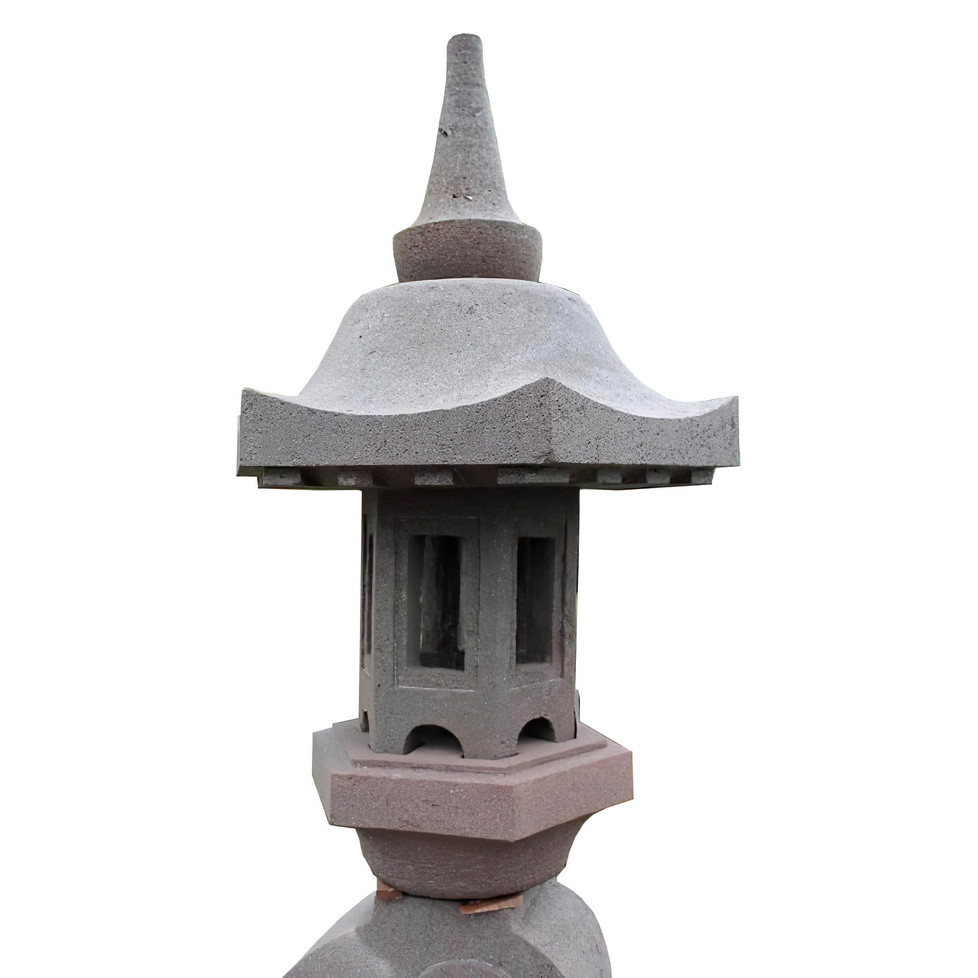 Cette grande lanterne en pierre revêt une grande importance traditionnelle au Japon et dans d'autres pays asiatiques. Les lanternes en pierre symbolisent l'harmonie et sont fabriquées artisanalement. La pierre naturelle utilisée est une lave pyroclastique, reconnue pour sa résistance aux intempéries et au gel. Grâce à de nombreuses inclusions d'air, la densité de cette pierre naturelle varie, mais elle reste globalement assez légère. Cette lanterne de jardin particulièrement grande est composée de 6 parties et doit être solidement assemblée avec un adhésif adapté pour pierre. Il est également recommandé de prévoir une fondation appropriée. Si vous le souhaitez, la lanterne peut être équipée d'un éclairage électrique ; dans ce cas, il est conseillé de faire appel à un électricien local pour une installation professionnelle.