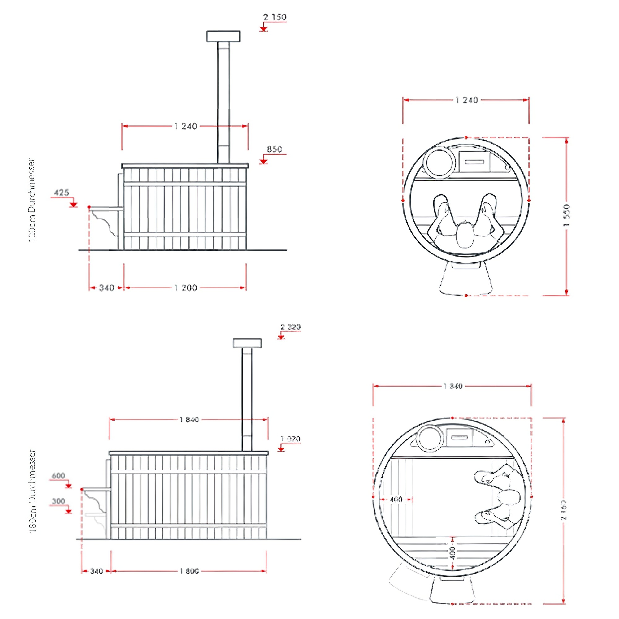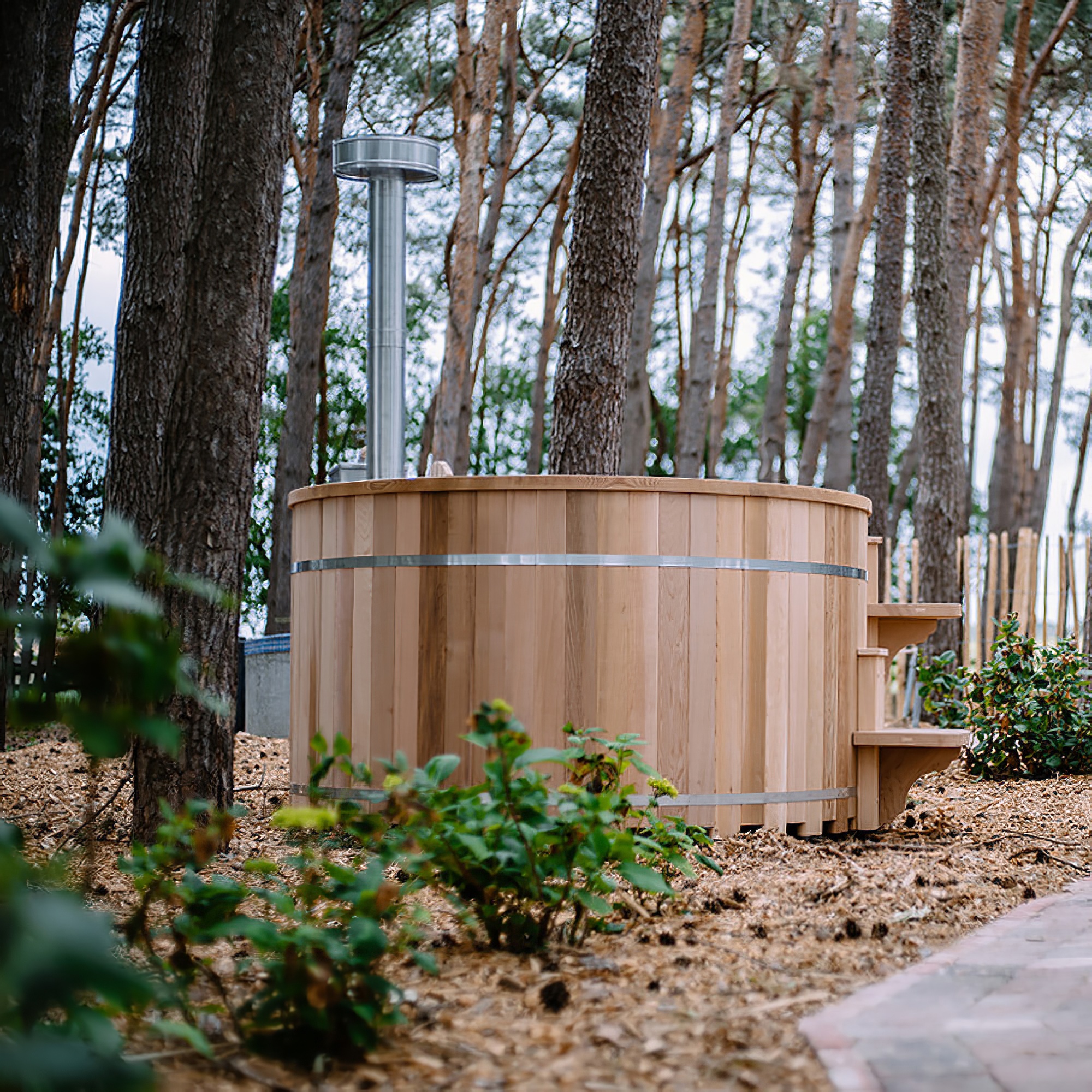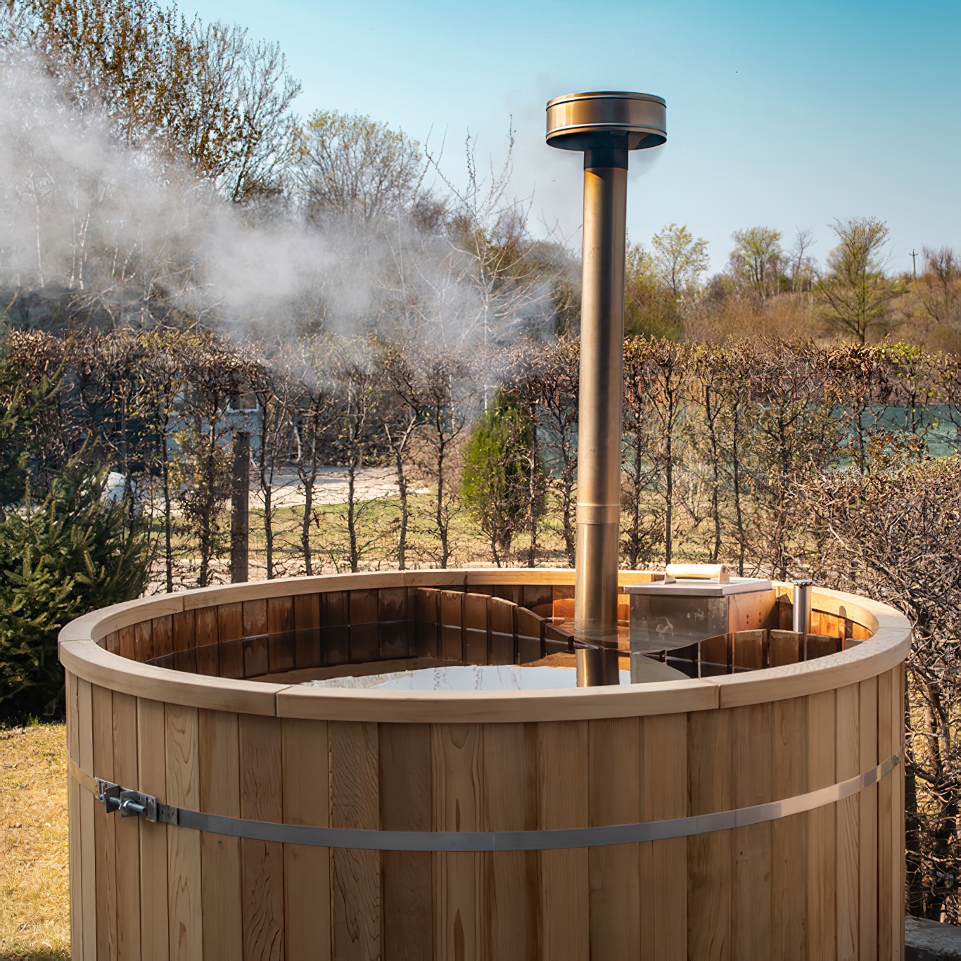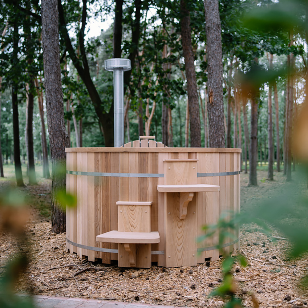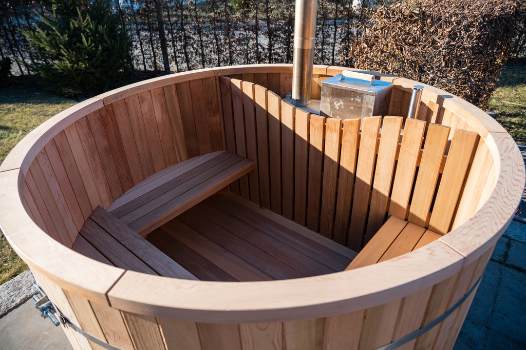 Traditioneller Außen Whirlpool aus Zedernholz mit Holzofen - rund - Bebti / ohne Abdeckung / 180cm