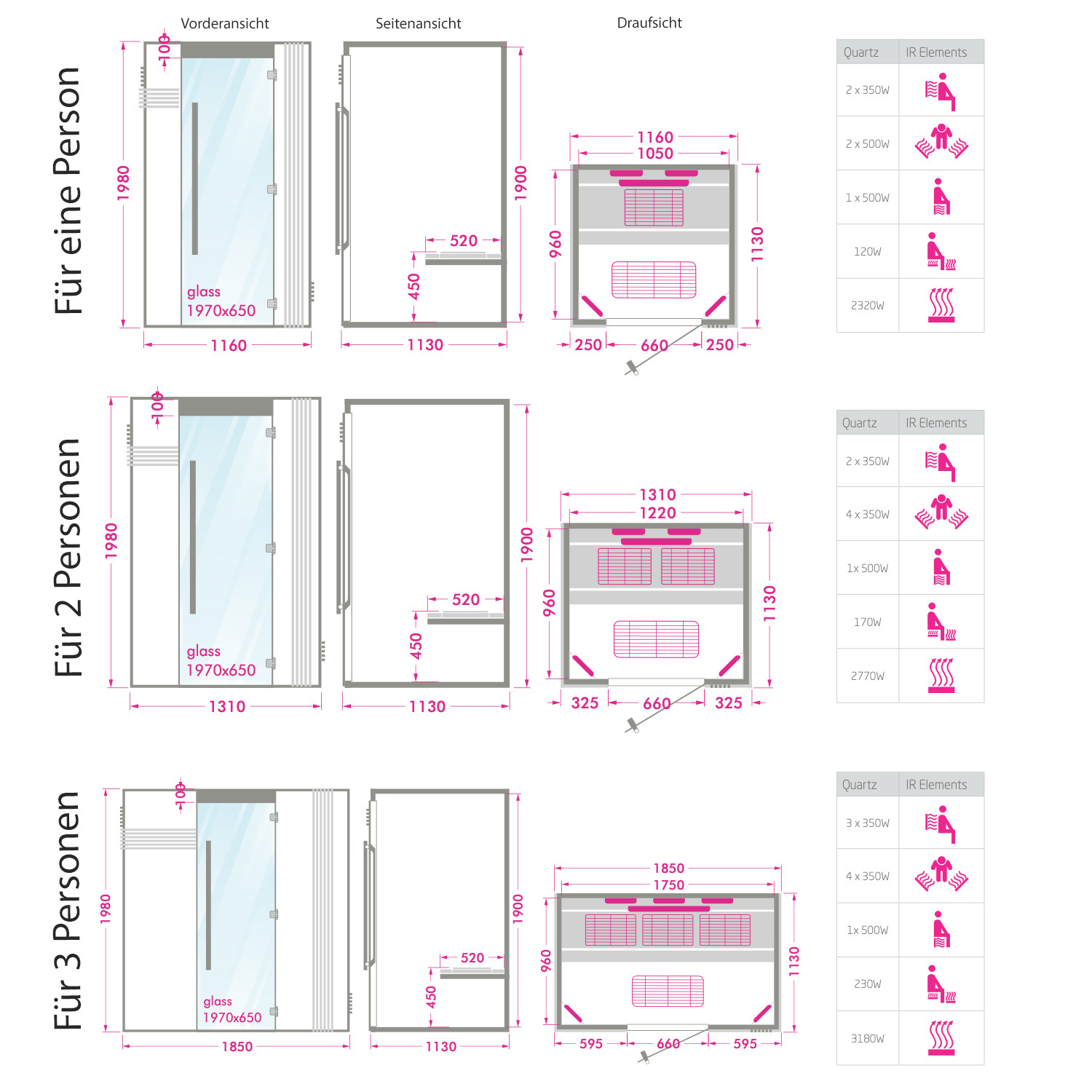 Vollausgestattete Indoor Infrarotkabine in verschiedenen Größen für zu Hause - Amany / für eine Person
