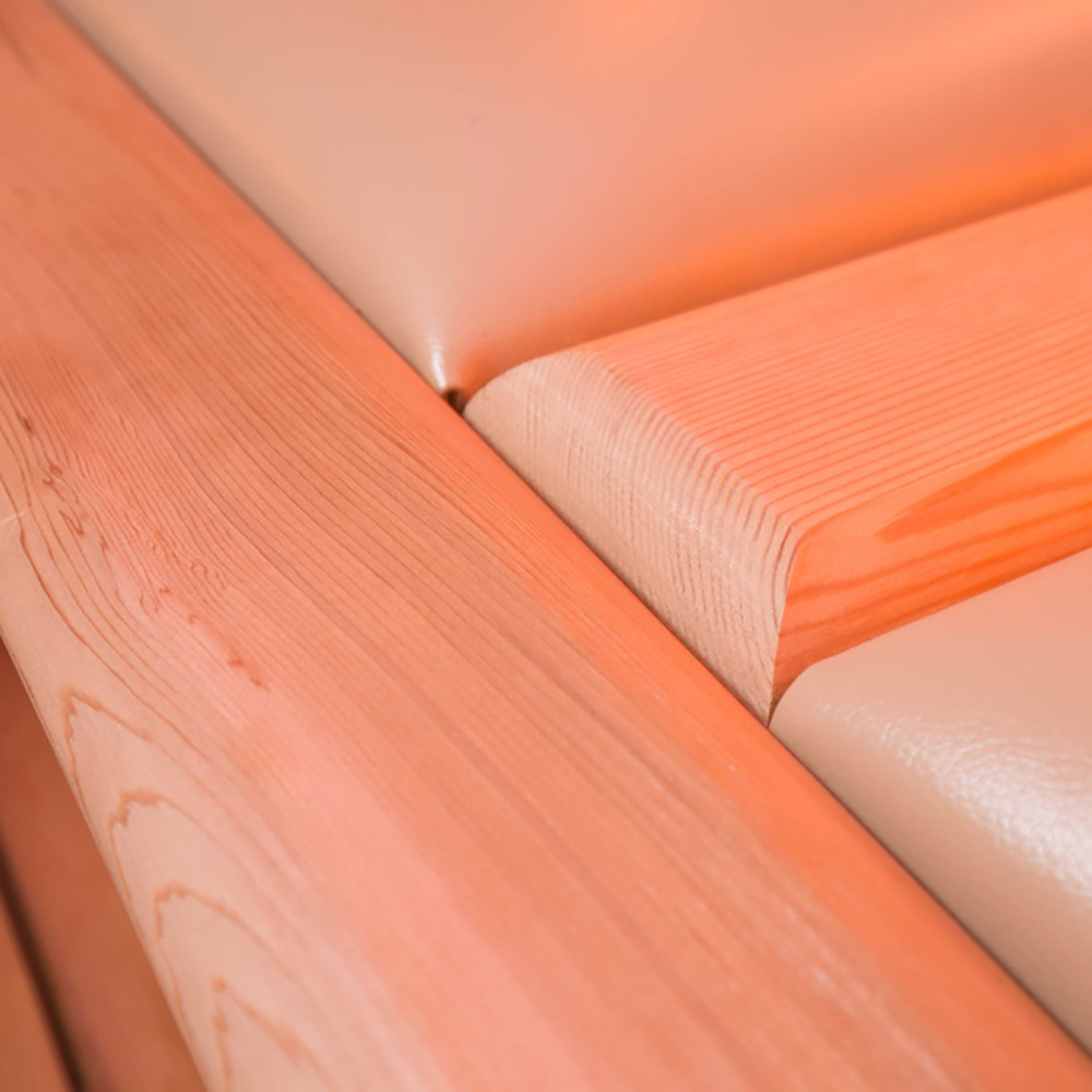 - Revêtement intérieur au choix : cèdre rouge canadien, sapin hemlock, bois d'abachi ou de tremble