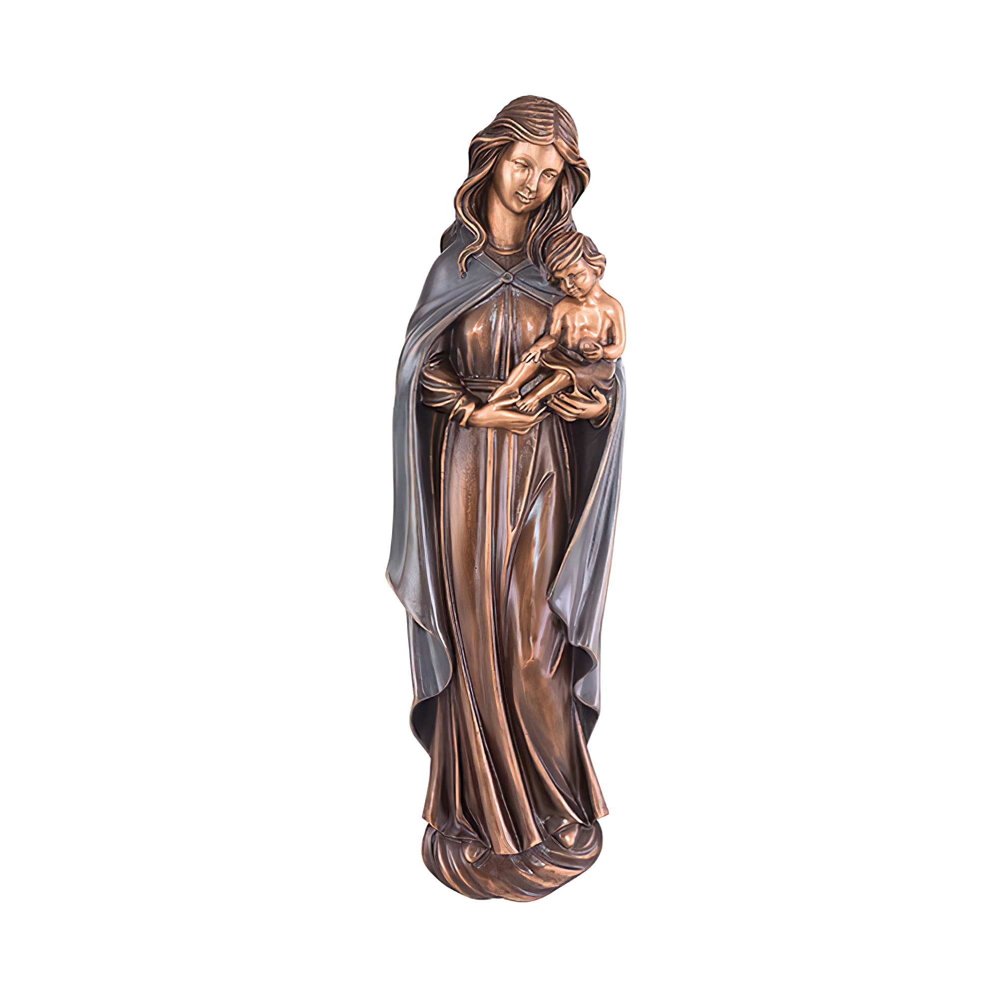 Wand Gartenfigur Maria mit Kind aus Bronze - Madonna Hemma / 20x5x3cm (HxBxT) / Bronze braun