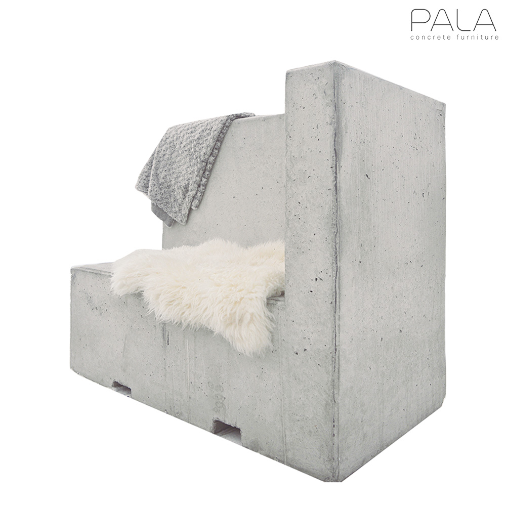 Ces meubles design robustes et résistants aux intempéries sont fabriqués en Finlande par Pala. Grâce à un procédé de moulage, le béton se transforme en mobilier d'extérieur contemporain, idéal pour aménager jardins, parcs ou espaces urbains. La teinte du béton peut être modulée selon le choix de la poudre de pierre, ce qui nous permet de vous proposer, sur demande, des meubles en béton en blanc, anthracite, rouge, orange, jaune ou bleu. Nous sommes également à votre écoute pour réaliser vos souhaits personnalisés. Envoyez-nous un croquis accompagné des dimensions nécessaires pour vos décorations ou meubles en béton uniques, et nous vous ferons une offre sans engagement. Un chariot élévateur ou une grue est requis pour le déchargement à la livraison. Les meubles sont équipés de points de levage intégrés.